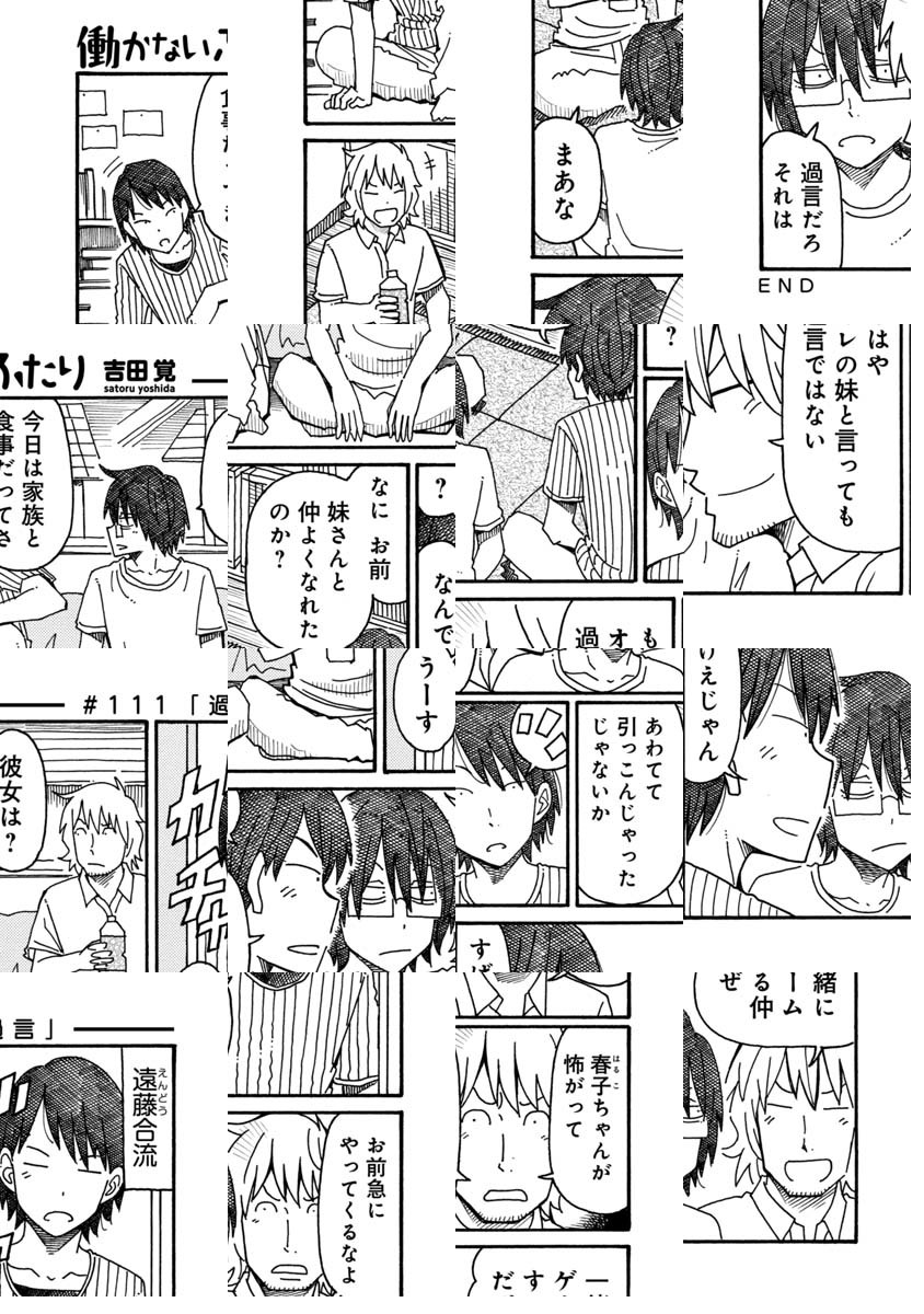 ブログでいくつか好き勝手描いていたショートショート漫画のひとつ『働かないふたり』に声がかかり連載を始めさせていただけることになりました。 『12連休』(エンターブレイン)という短編集も出ているので、よかったらそちらもよろしくお願いします。