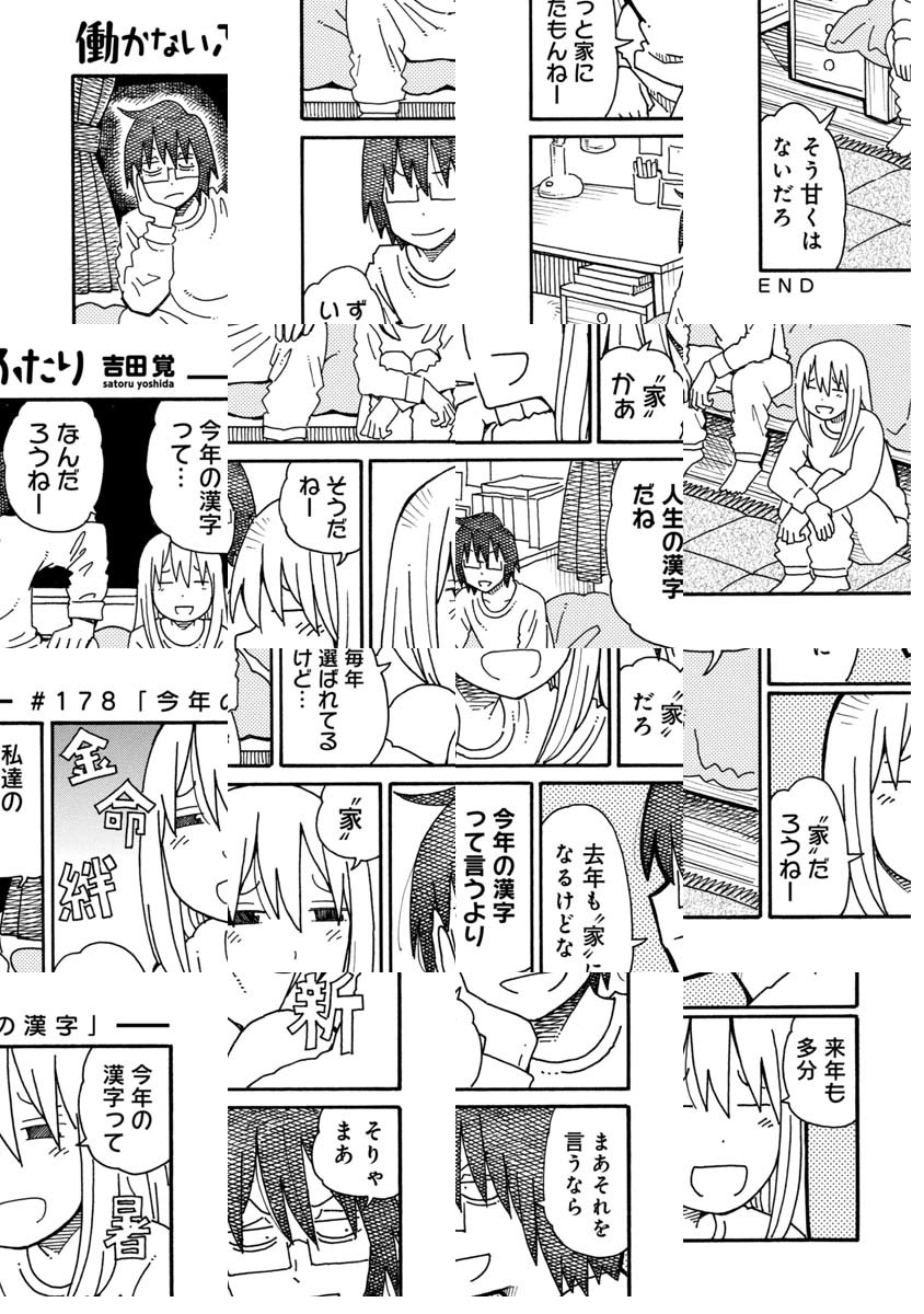 ブログでいくつか好き勝手描いていたショートショート漫画のひとつ『働かないふたり』に声がかかり連載を始めさせていただけることになりました。 『12連休』(エンターブレイン)という短編集も出ているので、よかったらそちらもよろしくお願いします。