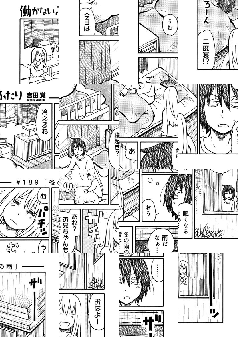 ブログでいくつか好き勝手描いていたショートショート漫画のひとつ『働かないふたり』に声がかかり連載を始めさせていただけることになりました。 『12連休』(エンターブレイン)という短編集も出ているので、よかったらそちらもよろしくお願いします。