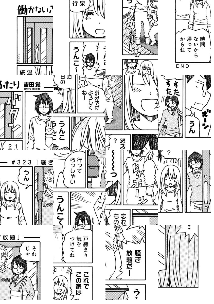 ブログでいくつか好き勝手描いていたショートショート漫画のひとつ『働かないふたり』に声がかかり連載を始めさせていただけることになりました。 『12連休』(エンターブレイン)という短編集も出ているので、よかったらそちらもよろしくお願いします。