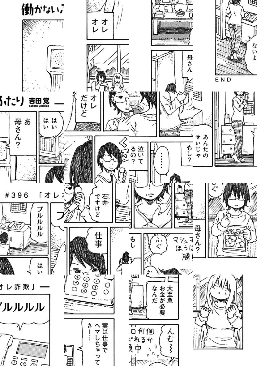 ブログでいくつか好き勝手描いていたショートショート漫画のひとつ『働かないふたり』に声がかかり連載を始めさせていただけることになりました。 『12連休』(エンターブレイン)という短編集も出ているので、よかったらそちらもよろしくお願いします。