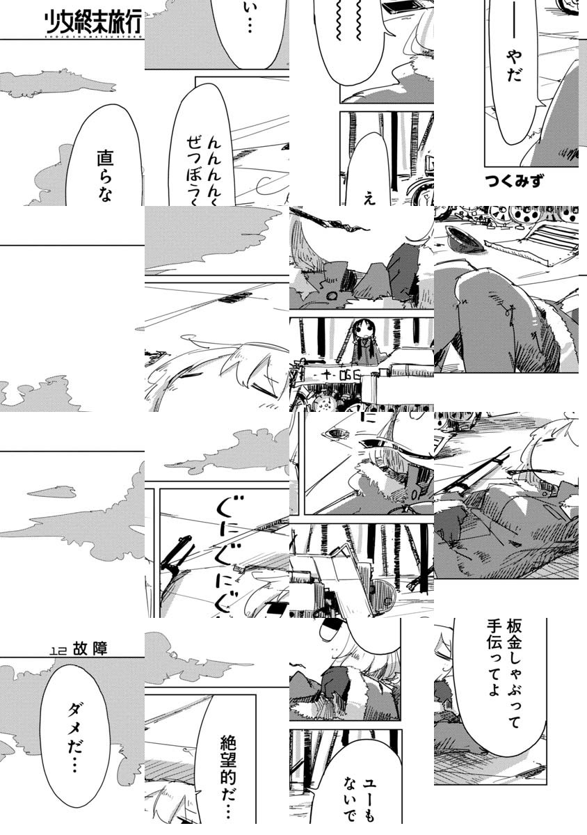 終末世界でふたりぼっちになってしまったチトとユーリは、愛車のケッテンクラートに乗って延々と広がる廃墟をあてもなくさまよう。日々の食事さえも事欠く、明日の見えない毎日。だけどそんな「日常」も、ふたり一緒だと、どこか楽しげだったりもして……。
