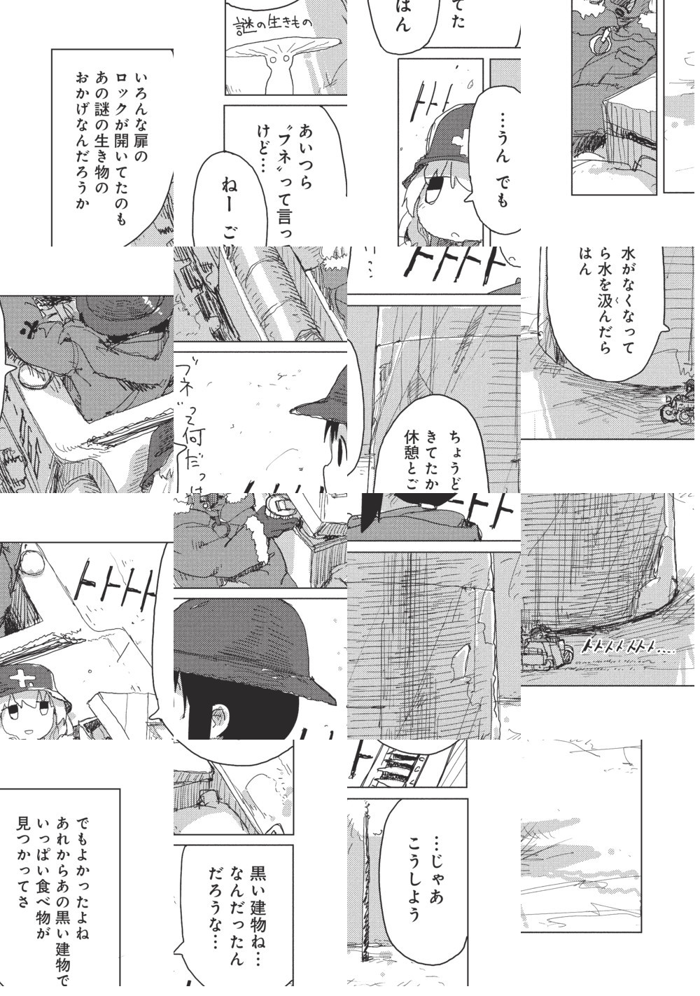 終末世界でふたりぼっちになってしまったチトとユーリは、愛車のケッテンクラートに乗って延々と広がる廃墟をあてもなくさまよう。日々の食事さえも事欠く、明日の見えない毎日。だけどそんな「日常」も、ふたり一緒だと、どこか楽しげだったりもして……。