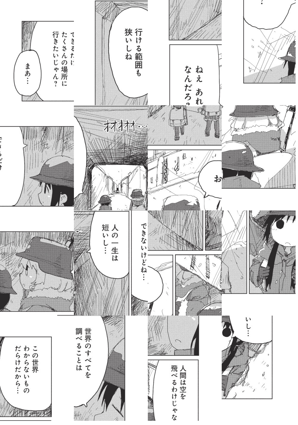 終末世界でふたりぼっちになってしまったチトとユーリは、愛車のケッテンクラートに乗って延々と広がる廃墟をあてもなくさまよう。日々の食事さえも事欠く、明日の見えない毎日。だけどそんな「日常」も、ふたり一緒だと、どこか楽しげだったりもして……。