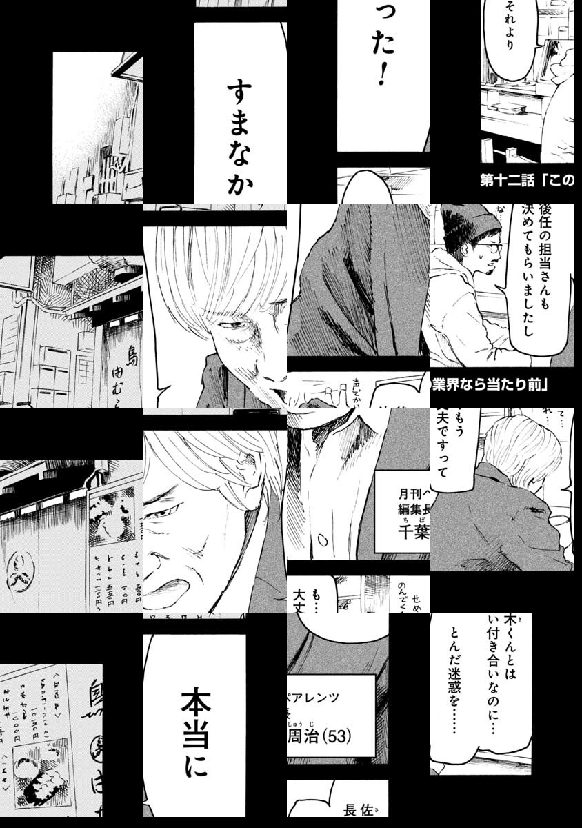 漫画家・佐木小次郎(45)はキャリア8年目の中堅漫画家。…と言えば聞こえはいいが、この出版不況、ここらで一発当てとかないと次がヤバい、そんな正念場に立たされている。そんな時、新しく担当についたのは、マンガ編集1年目の新人女性編集者・坂本涼(24)だった……。「マンガって実際、どうやって作ってるの?」「打ち合わせって、ほんとのところナニ話してるの?」の疑問に、ゆるく可笑しく、ときには叙情的に答える、「マンガの作り方コメディ」開演。