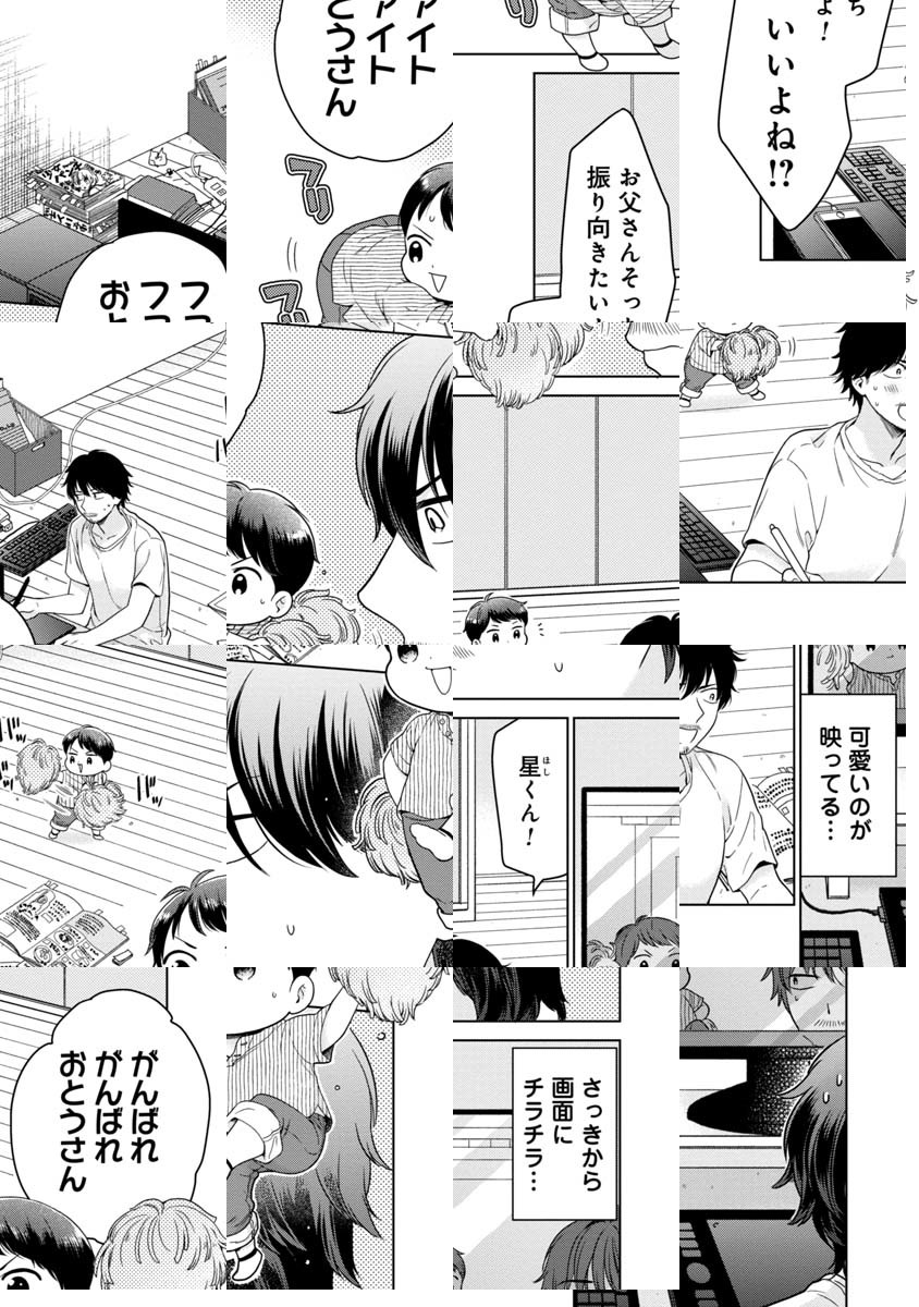 息子の星くんを溺愛するおとうさんは売れない漫画家。しかも連載が決まらずのヒモ状態に嫌気がさした嫁は出て行く始末…。「漫画を描いてくれたらまた好きになっちゃう」と訴える星くんの言葉に、おとうさんは立ち上がるが――!?