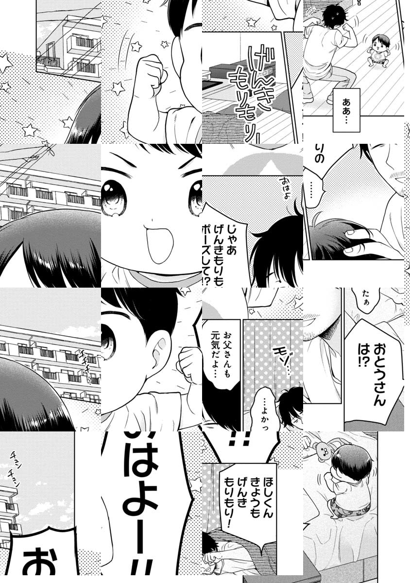 息子の星くんを溺愛するおとうさんは売れない漫画家。しかも連載が決まらずのヒモ状態に嫌気がさした嫁は出て行く始末…。「漫画を描いてくれたらまた好きになっちゃう」と訴える星くんの言葉に、おとうさんは立ち上がるが――!?