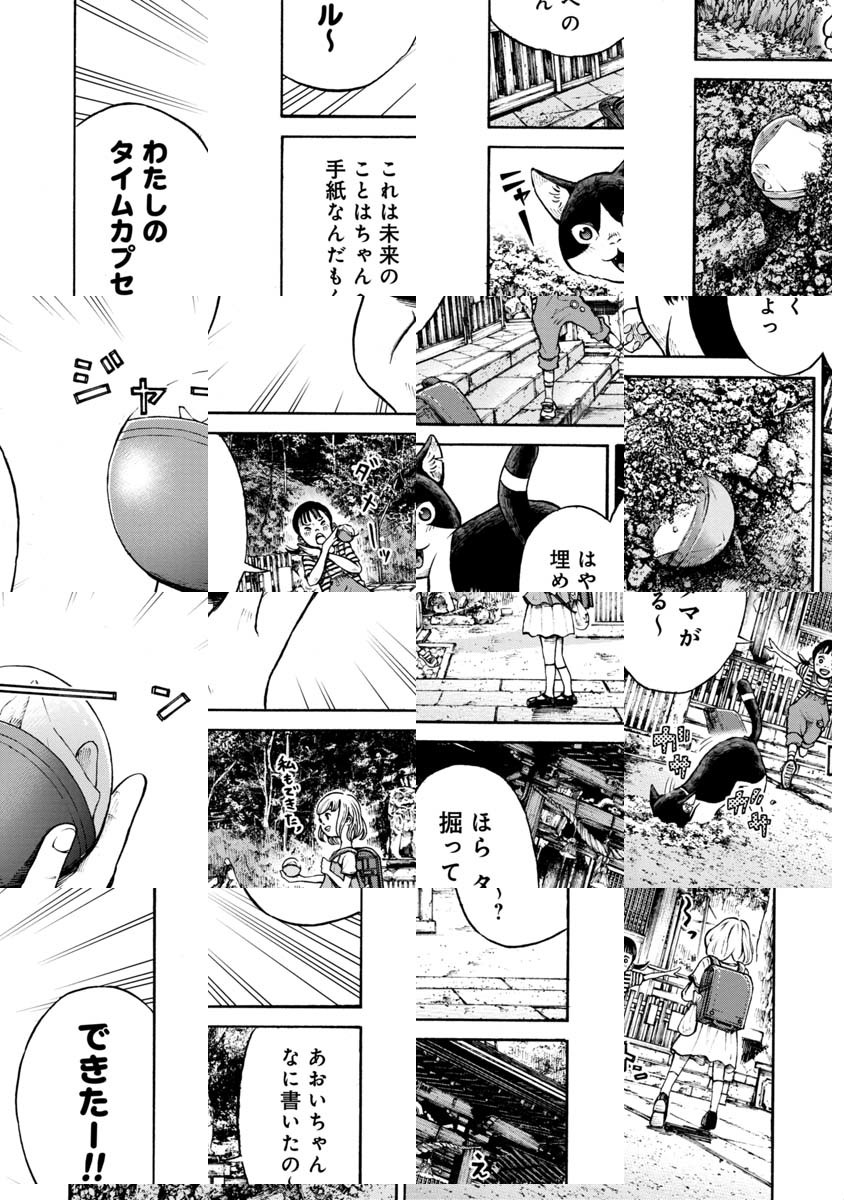 過去作に「鳥飼暴風域」(『週刊SPA!』扶桑社)、「fの魔法使い」(『グランドジャンプ』集英社)、「ねぇふみお」(『Dモーニング』講談社)など。今作では、思春期の少女の心の陰影を繊細なタッチで描く。「はじめまして。久しぶりに読み切りが載るという事でとても嬉しく思います。当時、家に引きこもって作ってた作品なんですが、今思えば愛が欲しかったんだなと、、、。今後ともどんどん描いていこうと思いますので、よろしくお願い申し上げます」