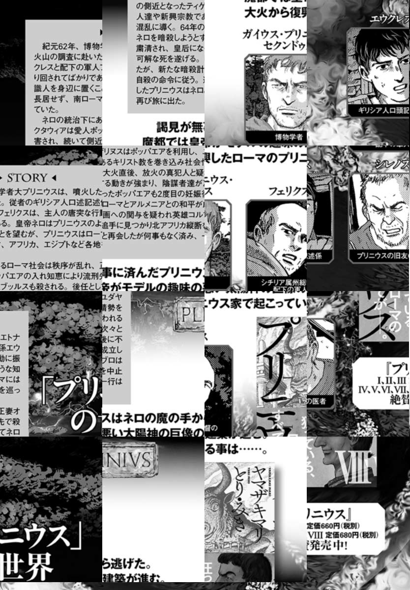 世界史上もっとも著名な博物学者にして、ローマ艦隊の司令長官。古代ローマ一の知識人にして、風呂好きの愛すべき変人。その男の名はプリニウス――。『テルマエ・ロマエ』のヤマザキマリが、最強のパートナー〝とり・みき″を迎えて、ふたたび魅惑の古代ローマ世界に挑む。圧倒的な構成と迫真の画力で2000年前の世界を描く、歴史伝奇ロマンの決定版!