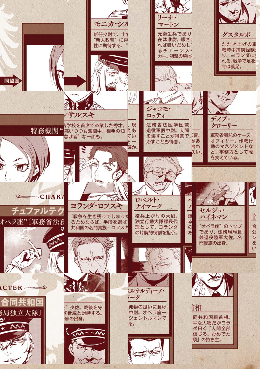 これまでのお仕事は、『幼女戦記』、『約束の国』、『ヤキトリ』など。 「すごい先生が多い世界なので、自分らしさを出せる様に頑張ってみました。 ただ、売国機関という編集部戦慄のタイトルを認めてくれたバンチさんは……彼らもまた勇者かもしれません。 ご同道いただく品先生にはご心労をお掛けするかもしれませんが、ご容赦の程を。」