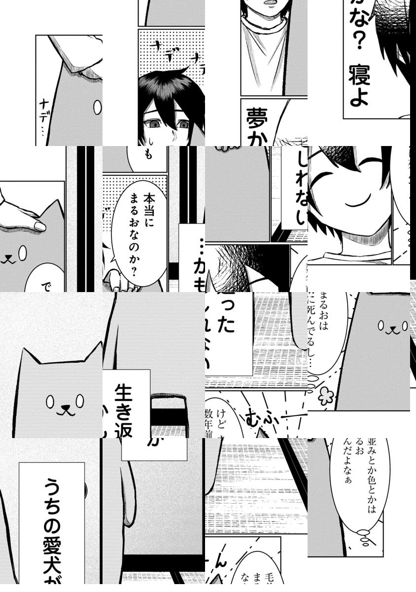深夜、夜更かししていた主人公の前に突然現れたのは、白い目をした二足歩行の犬――!?死んだ愛犬「まるお」にどこか似ている謎の生き物「めじろいぬ」とのほのぼのコメディ!!