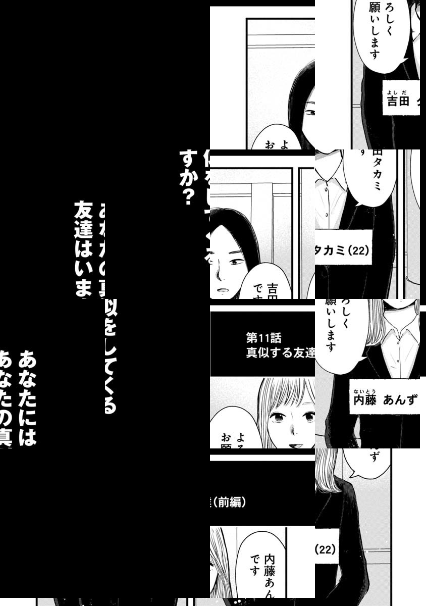あなたのまわりにもきっといる、マウンティング友、群れたがり友、SNS依存友…最初は仲が良かったはずなのに、気づけば頭を悩ませる毒友たち。「一緒にいて苦しいけれど、それでも仲良くしなきゃ、友達は多い方がいい…」そんな呪いから解放される方法を、人間研究家・有馬亜土が指南します!友達に悩むすべての人に贈る、友達関係デトックス・コミック!
