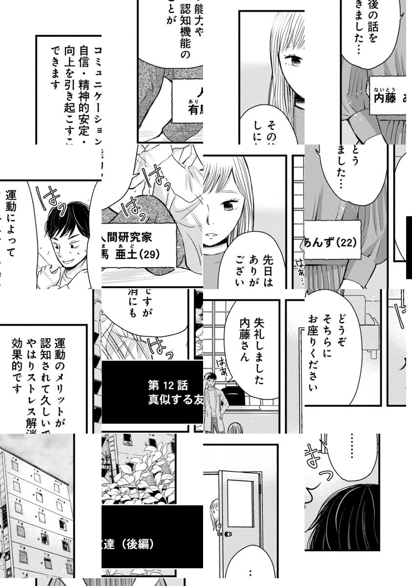 あなたのまわりにもきっといる、マウンティング友、群れたがり友、SNS依存友…最初は仲が良かったはずなのに、気づけば頭を悩ませる毒友たち。「一緒にいて苦しいけれど、それでも仲良くしなきゃ、友達は多い方がいい…」そんな呪いから解放される方法を、人間研究家・有馬亜土が指南します!友達に悩むすべての人に贈る、友達関係デトックス・コミック!