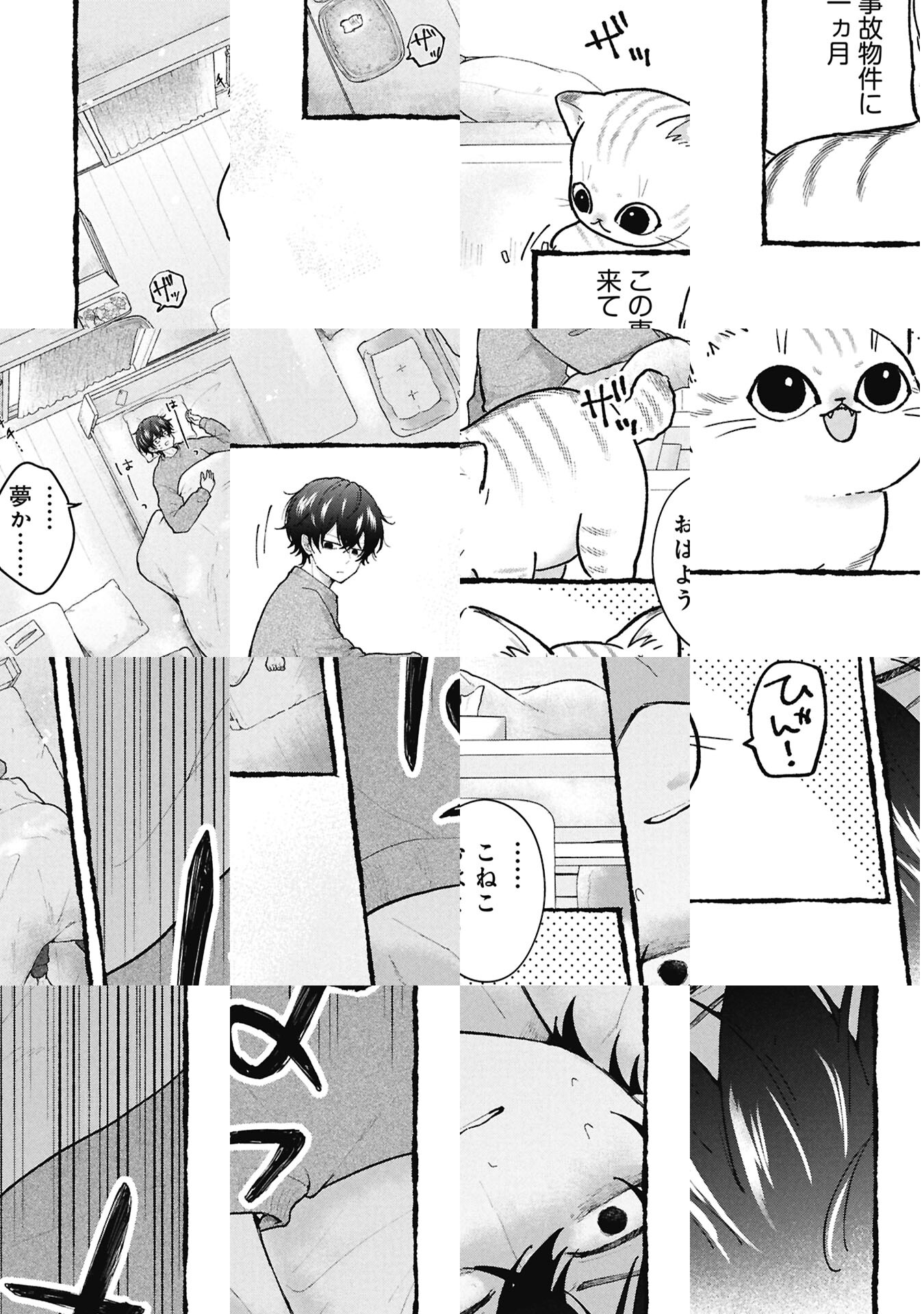 「猫が何もない場所を見て…いや幽霊に遊んでもらってる???」 ある事情で、事故物件に引っ越してきた琥太郎。不気味な物音、いないはずの人影、迫りくる異形……怯える琥太郎を尻目に、飼い猫・こねこは元気いっぱい幽霊にじゃれついて!? 幽霊と猫との同居生活、スタート!