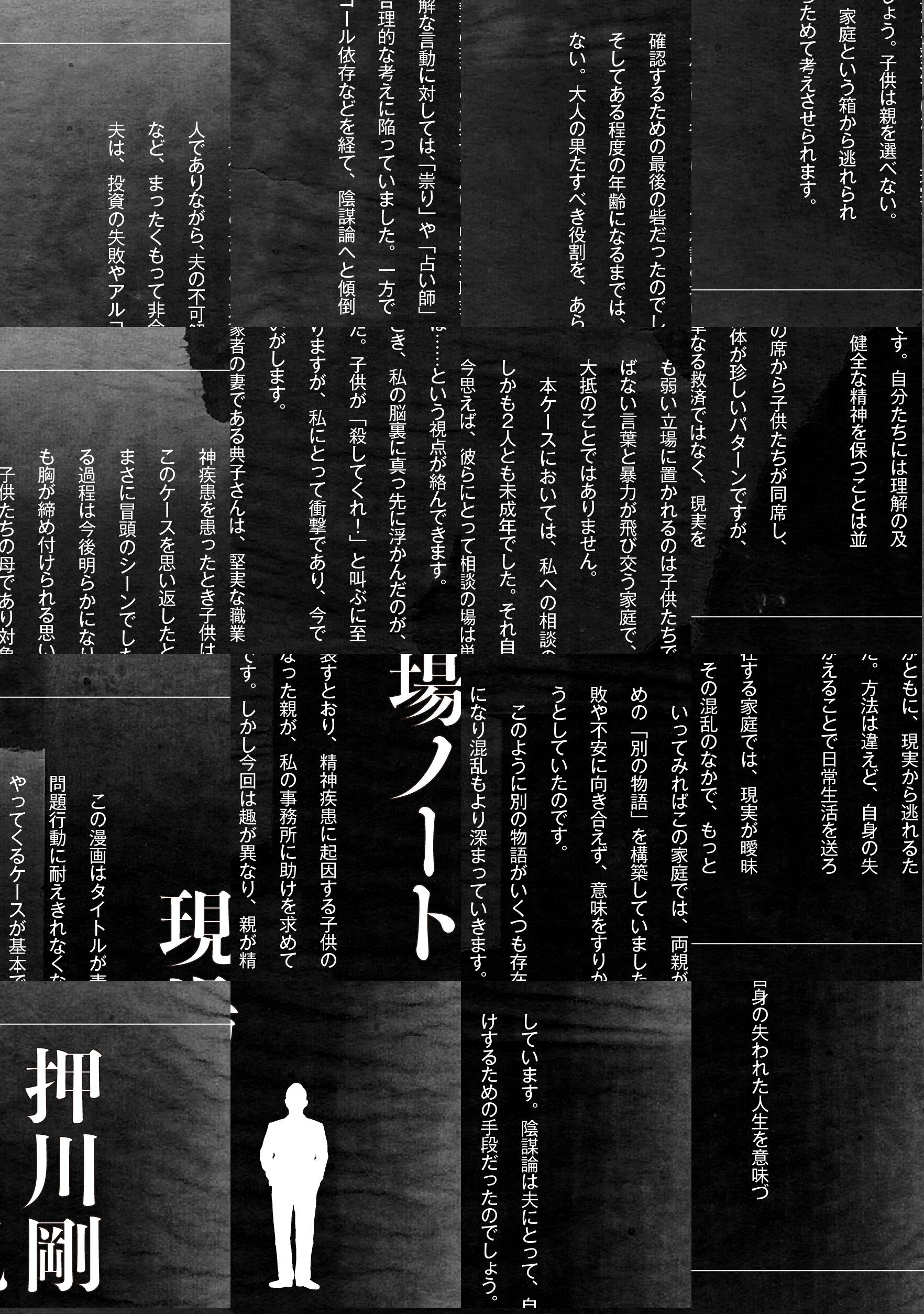 過度の教育圧力に潰れたエリートの息子、酒に溺れて親に刃物を向ける男、母親を奴隷扱いし、ゴミに埋もれて生活する娘…。現代の裏側に潜む家族と社会の闇を抉り、その先に光を当てる…。様々なメディアで取り上げられた押川剛の衝撃のノンフィクションを鬼才・鈴木マサカズの力で完全漫画化!