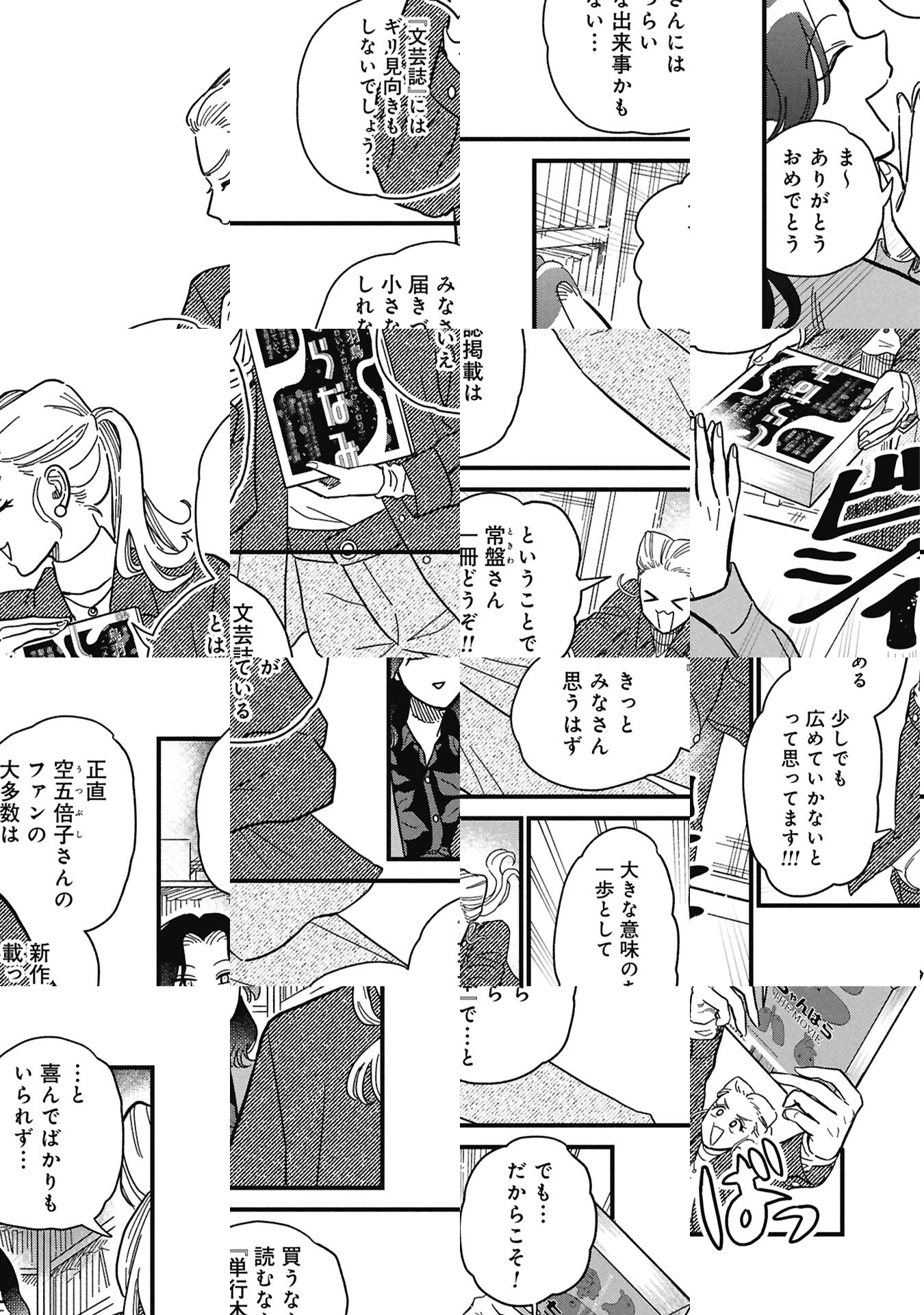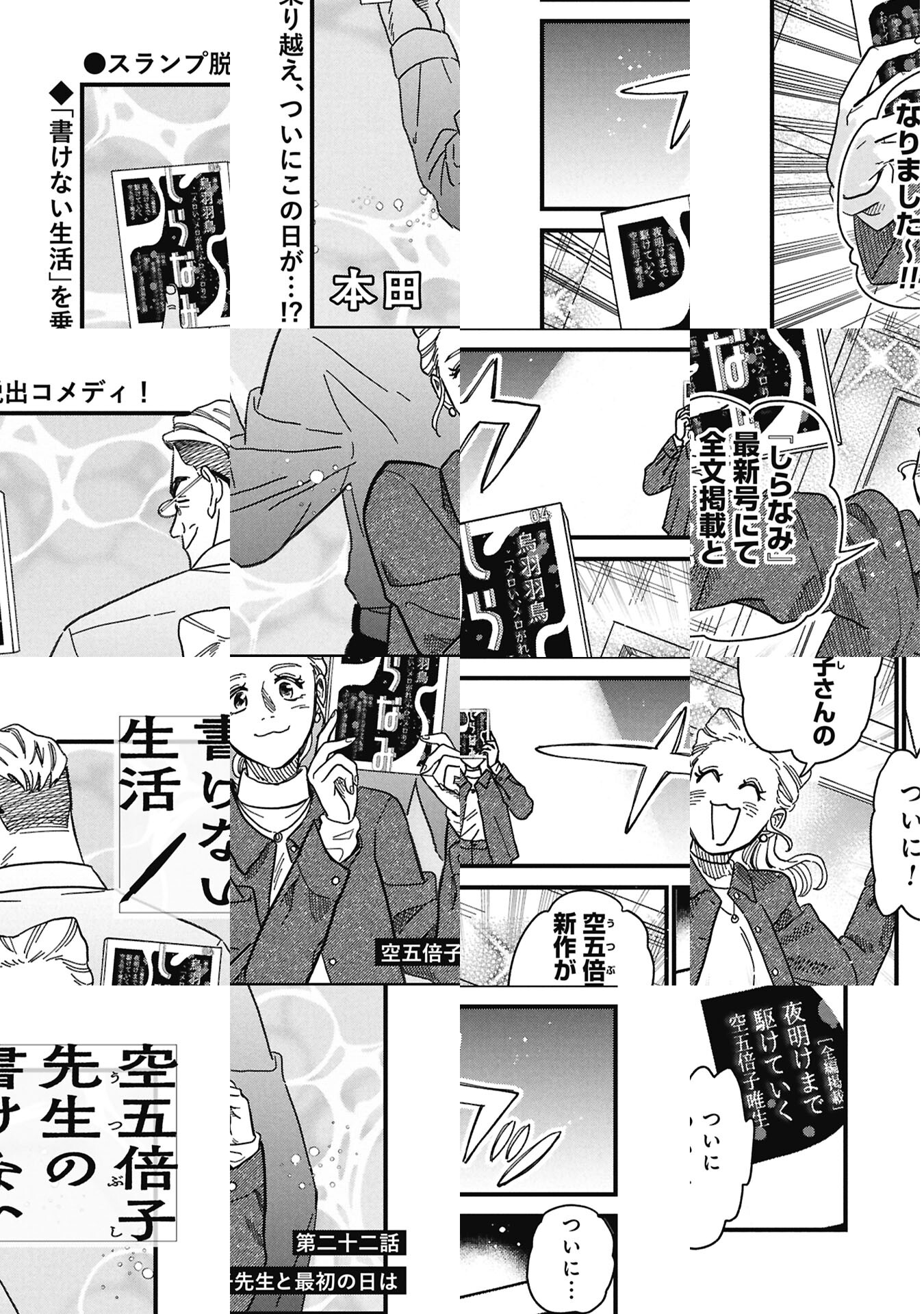 老舗出版社・白鯨社(はくげいしゃ)を舞台に、 書けない小説家・空五倍子唯生(うつぶしただお)がもう一度書くために七転八倒、暗中模索する出版業界コメディ。