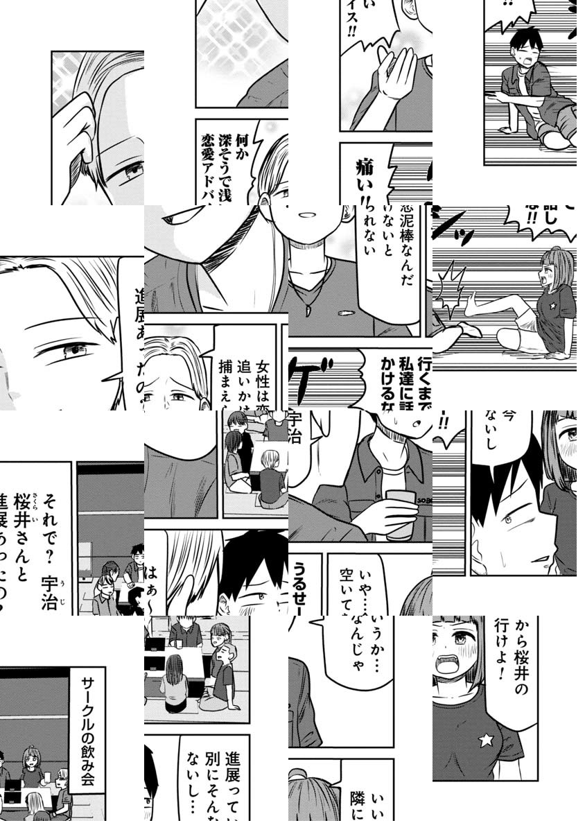 大学生の宇治は、同級生の桜井さんへの片思いの相談する為、桜井さんと親友で、自分の友人でもある鯖江に相談するが、二人っきりの居酒屋で変な雰囲気になってしまい…友情を取るか性欲を取るか!理性ギリギリキャンパスライフ開幕!!