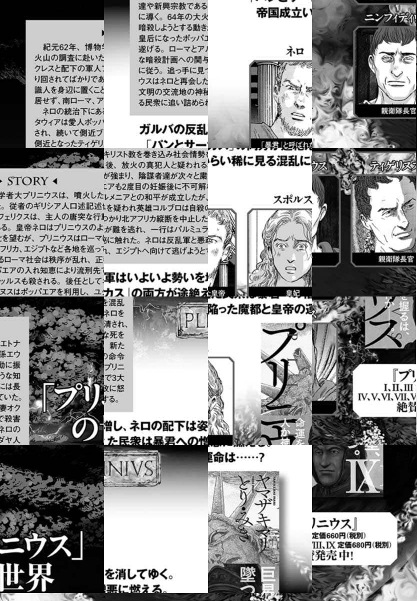 世界史上もっとも著名な博物学者にして、ローマ艦隊の司令長官。古代ローマ一の知識人にして、風呂好きの愛すべき変人。その男の名はプリニウス――。『テルマエ・ロマエ』のヤマザキマリが、最強のパートナー〝とり・みき″を迎えて、ふたたび魅惑の古代ローマ世界に挑む。圧倒的な構成と迫真の画力で2000年前の世界を描く、歴史伝奇ロマンの決定版!