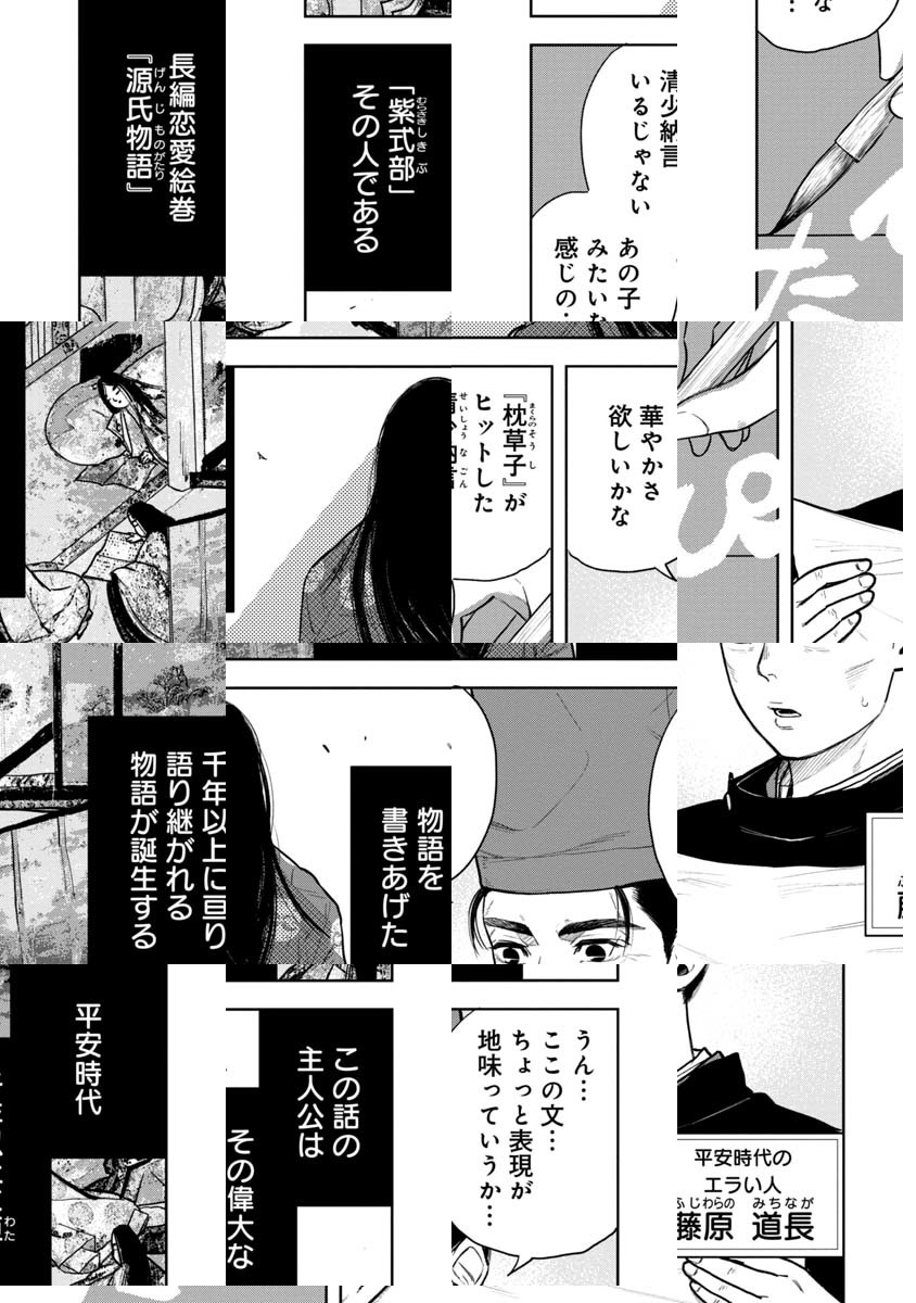 「枕草子はオシャレくそ日記」「幸せなカップルの話なんて書けない」ーー。十二単の袖をまくり、裾は乱れ、髪を振り乱しながら「源氏物語」を書く紫式部。金も名誉も興味がない式部は、何を目的にそこまで頑張るのか。そして、光源氏の知られざるモデルとはーー!? ドタバタ平安コメディ、開幕!