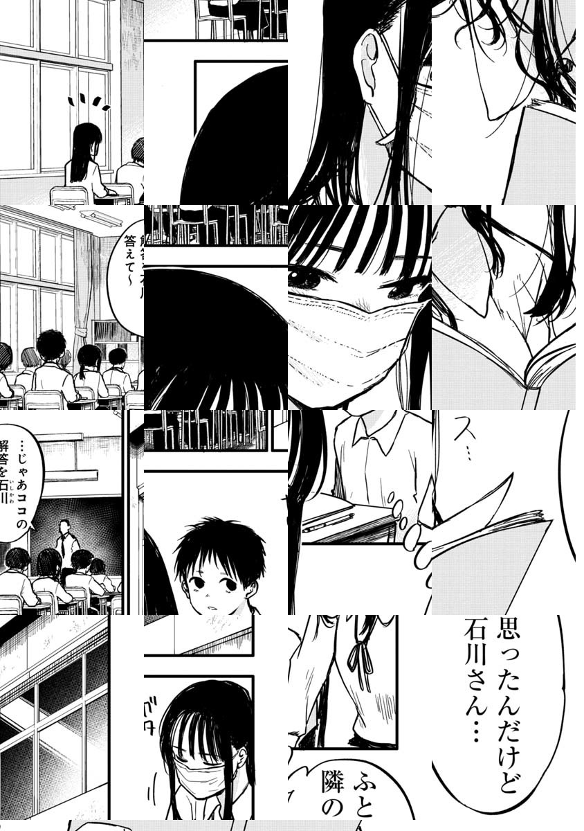 隣の席にいる石川さんは、なにをするときもマスクをしている。井澤は、ある時そんな石川さんの素顔を見てしまい、もっとちゃんと素顔を見たいと思い始める…。マスクをしていても、していなくても可愛いマスクラブコメ♪