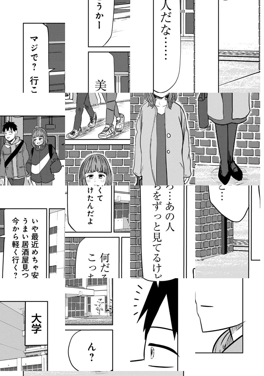 大学生の宇治は、同級生の桜井さんへの片思いの相談する為、桜井さんと親友で、自分の友人でもある鯖江に相談するが、二人っきりの居酒屋で変な雰囲気になってしまい…友情を取るか性欲を取るか!理性ギリギリキャンパスライフ開幕!!