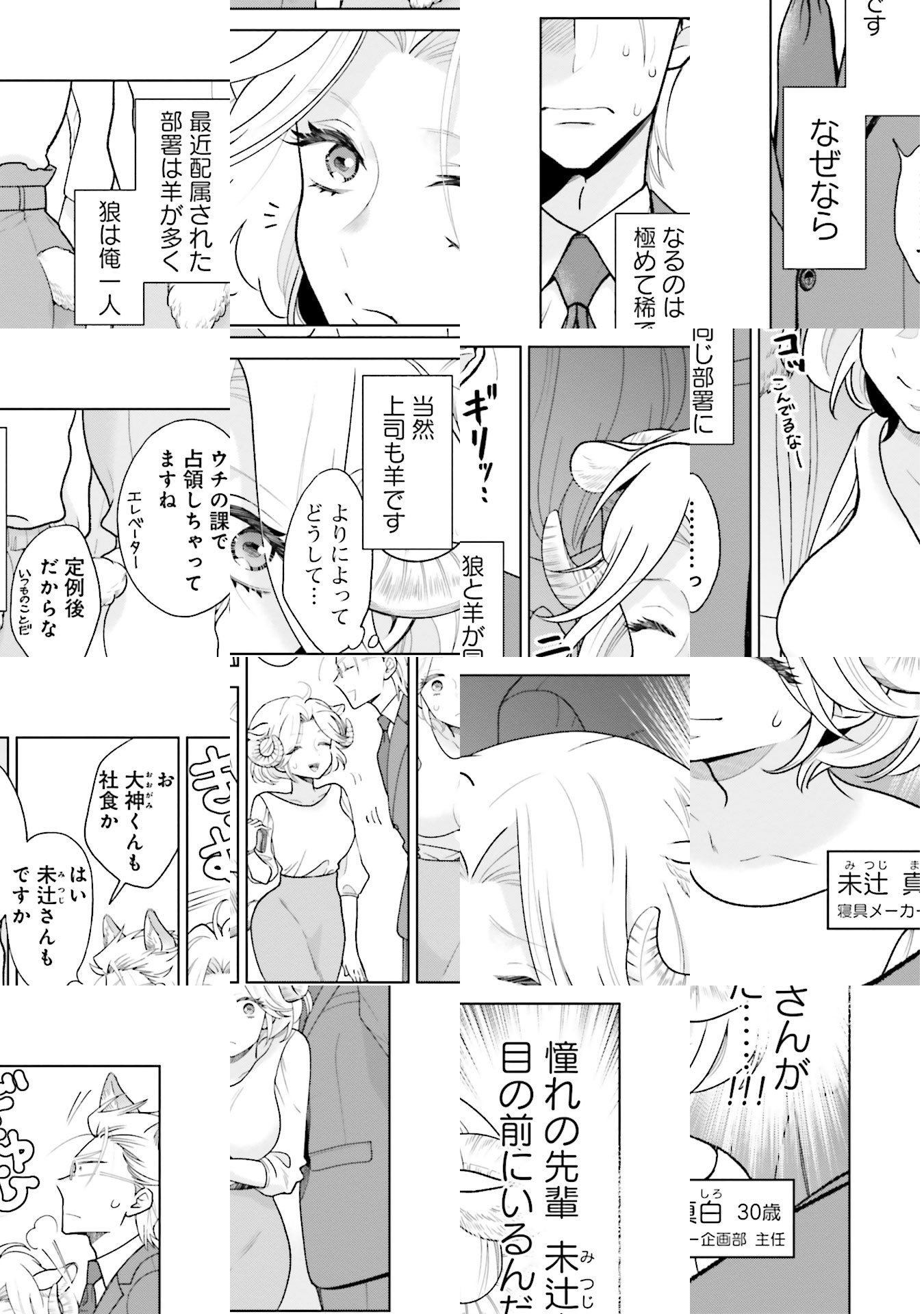 寝具メーカーに勤める大神くんは、狼を先祖に持つ生粋の狼男子。入社時から憧れていた先輩・未辻さんと同じ部に異動になったけれど、そこは未辻さんを筆頭に、羊の血を引く女子だらけの部署で──!? 動物の子孫たちが繰り広げる、アニマル・オフィスラブコメディ♪