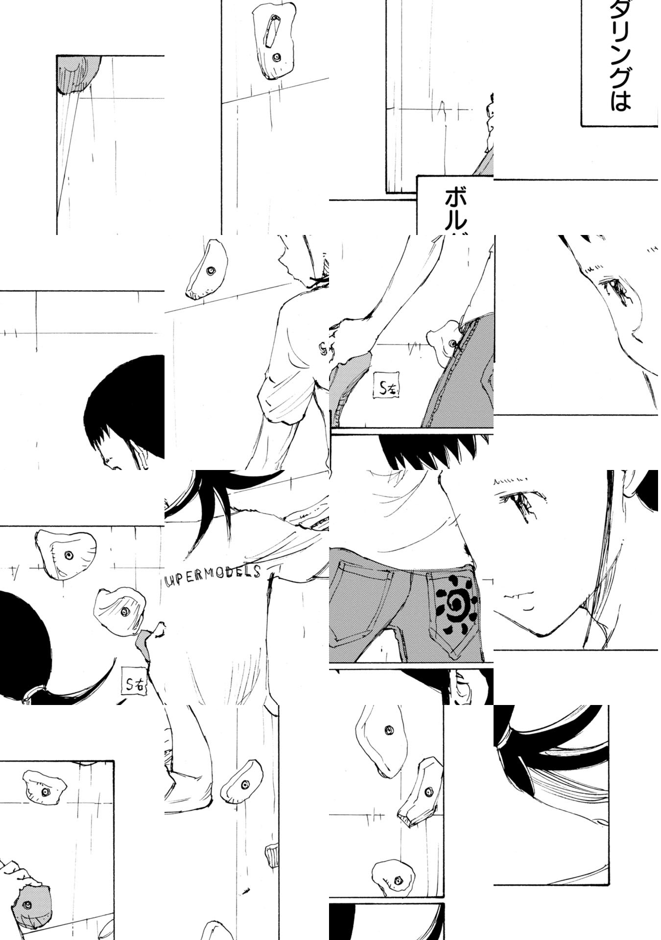 「ボルダリング漫画です。これを機に、ボルダリング面白そうやってみようと思われた方、くれぐれも無理はしないようにお願いします。いずれそういうネタにも触れるつもりですが非常に負荷が高いスポーツです。自転車では無理をして「超え」てもその日一日 走れない程度で済みますが、ボルダリングで自分の限界を「超え」ると数日、数週間、数カ月、もしかすると数年、ボルダリングが出来なくなる可能性があります。趣味スポーツは自制心ですね。ん?自分? 経験者は語る、ですね。では「のボルダ」本編よろしくお願いします。/『完全版 ぼくらの』全5巻好評発売中。「コミックDAYS」にて『ヨリシロトランク』を原作連載中。