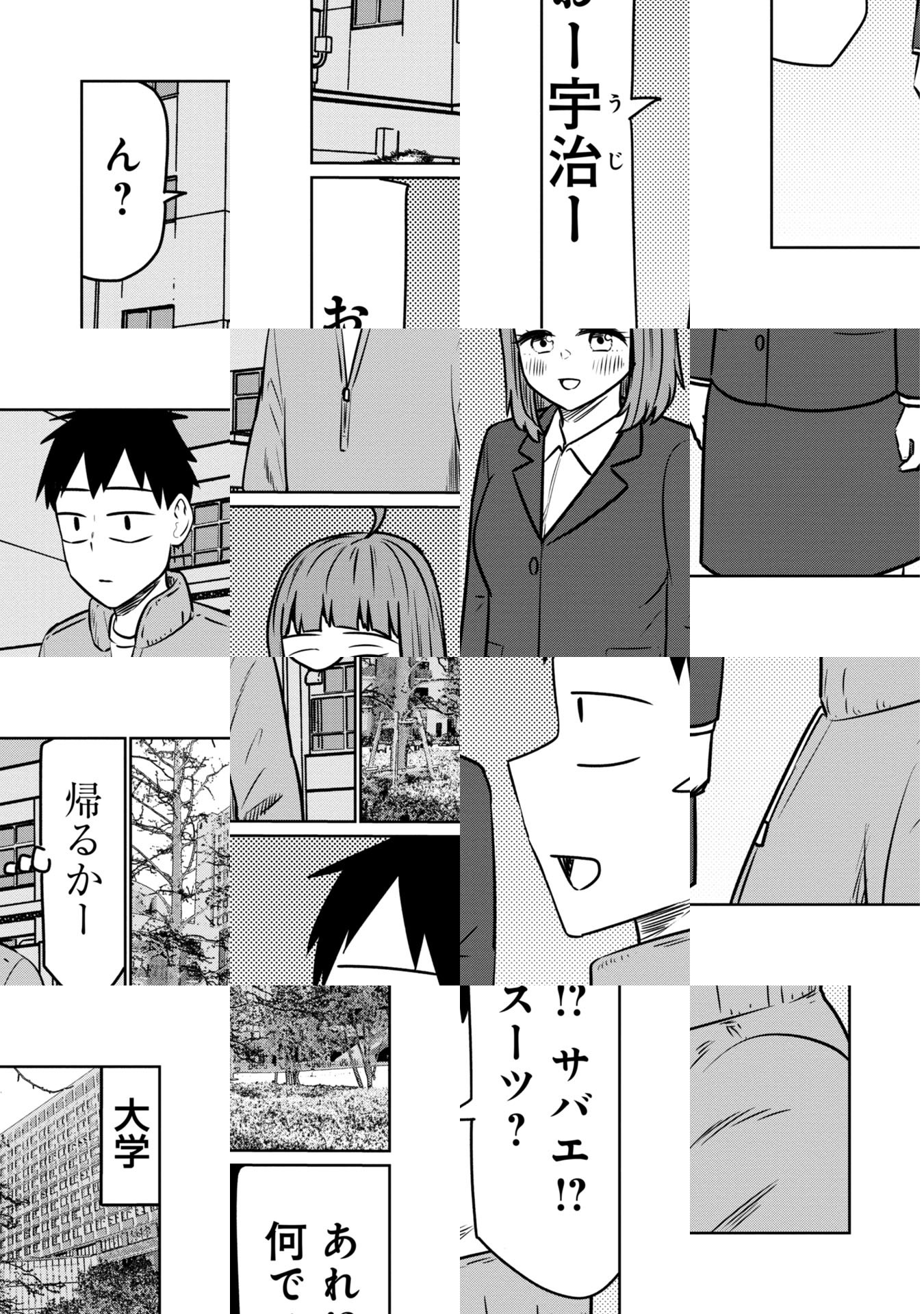 大学生の宇治は、同級生の桜井さんへの片思いの相談する為、桜井さんと親友で、自分の友人でもある鯖江に相談するが、二人っきりの居酒屋で変な雰囲気になってしまい…友情を取るか性欲を取るか!理性ギリギリキャンパスライフ開幕!!