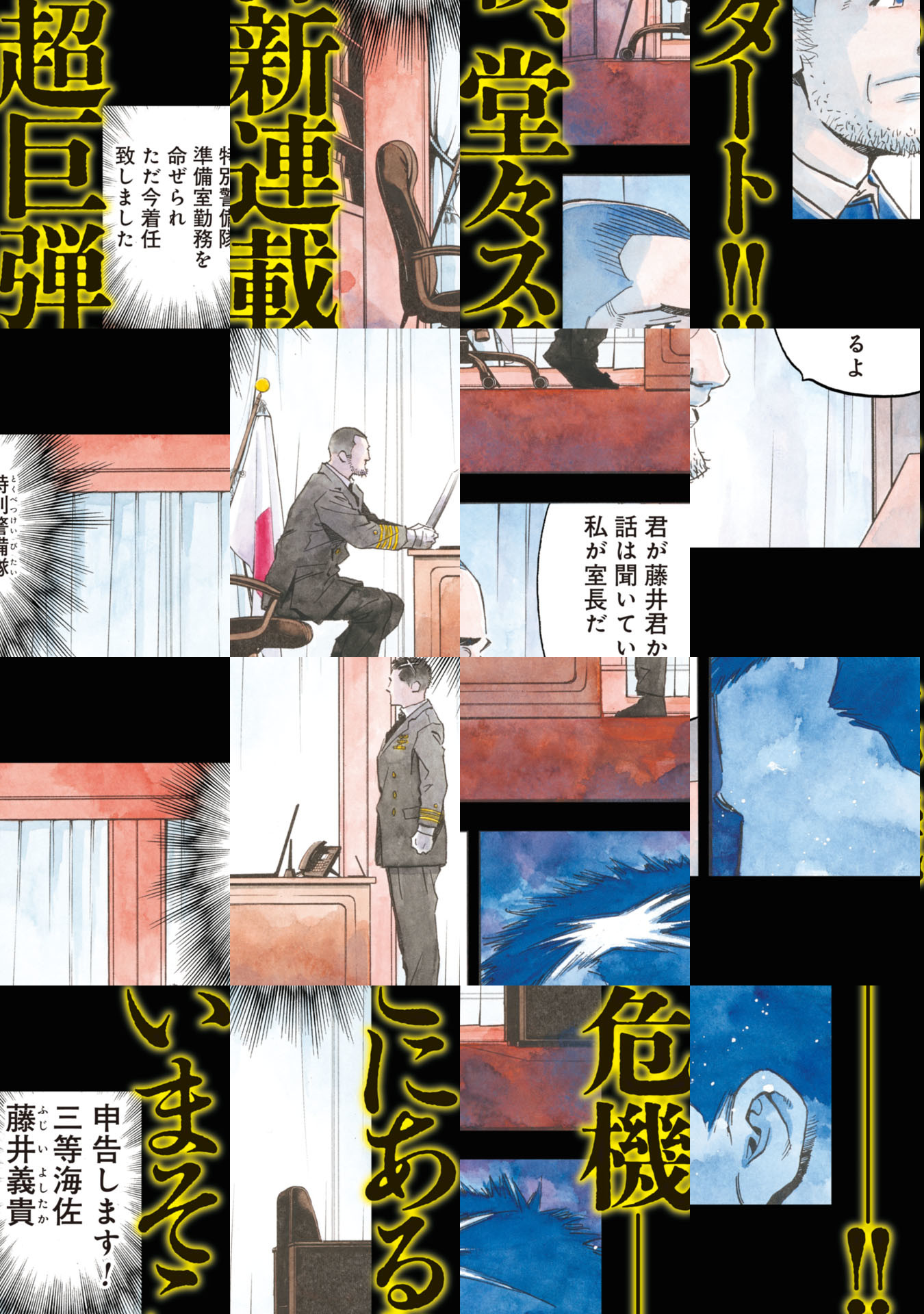 海上自衛隊特別警備隊の創設者が、政府の動きや作戦行動を完全シミュレーション。瞠目の同名ドキュメントノベルを自ら完全監修し漫画化! 執筆の『全裸監督』『紫電改343』須本壮一の鬼気迫る画面に刮目せよ!