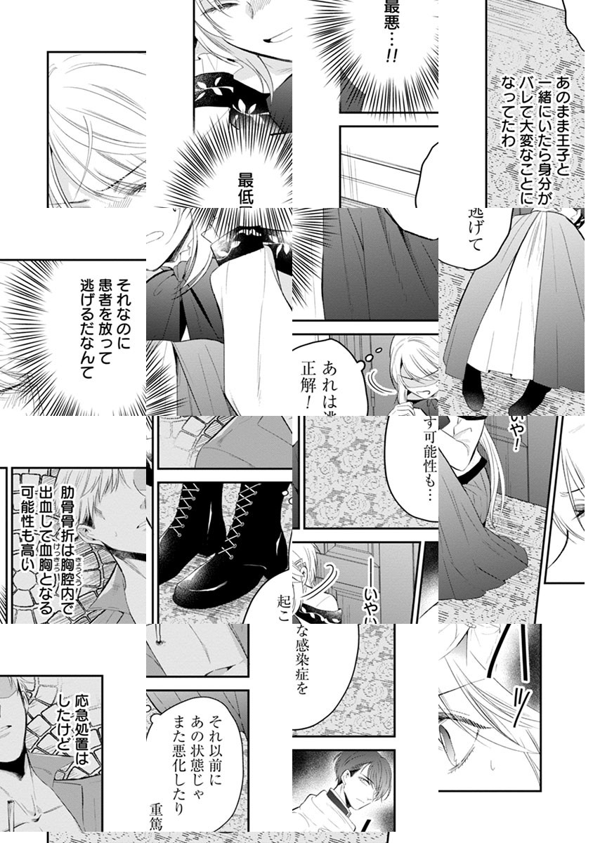 天才外科医・桐原アキラは、突如『シンデレラの婚約』の主人公キアラ・ベルワースに転生してしまう。キアラの世界では魔力で怪我を治していたが、魔力で治せない怪我人は見捨てられていた。王子・セシルの従者の応急処置をしたことをきっかけに、この国の医療体制を見直したい王子に気に入られ、プロポーズされるキアラ。王子のバックアップを受け、魔力で治らない患者たちを外科手術で治していく。最初は相棒のような関係の王子だったが、だんだんお互い惹かれていって――。医療改革で国を救う、転生医療ファンタジー。