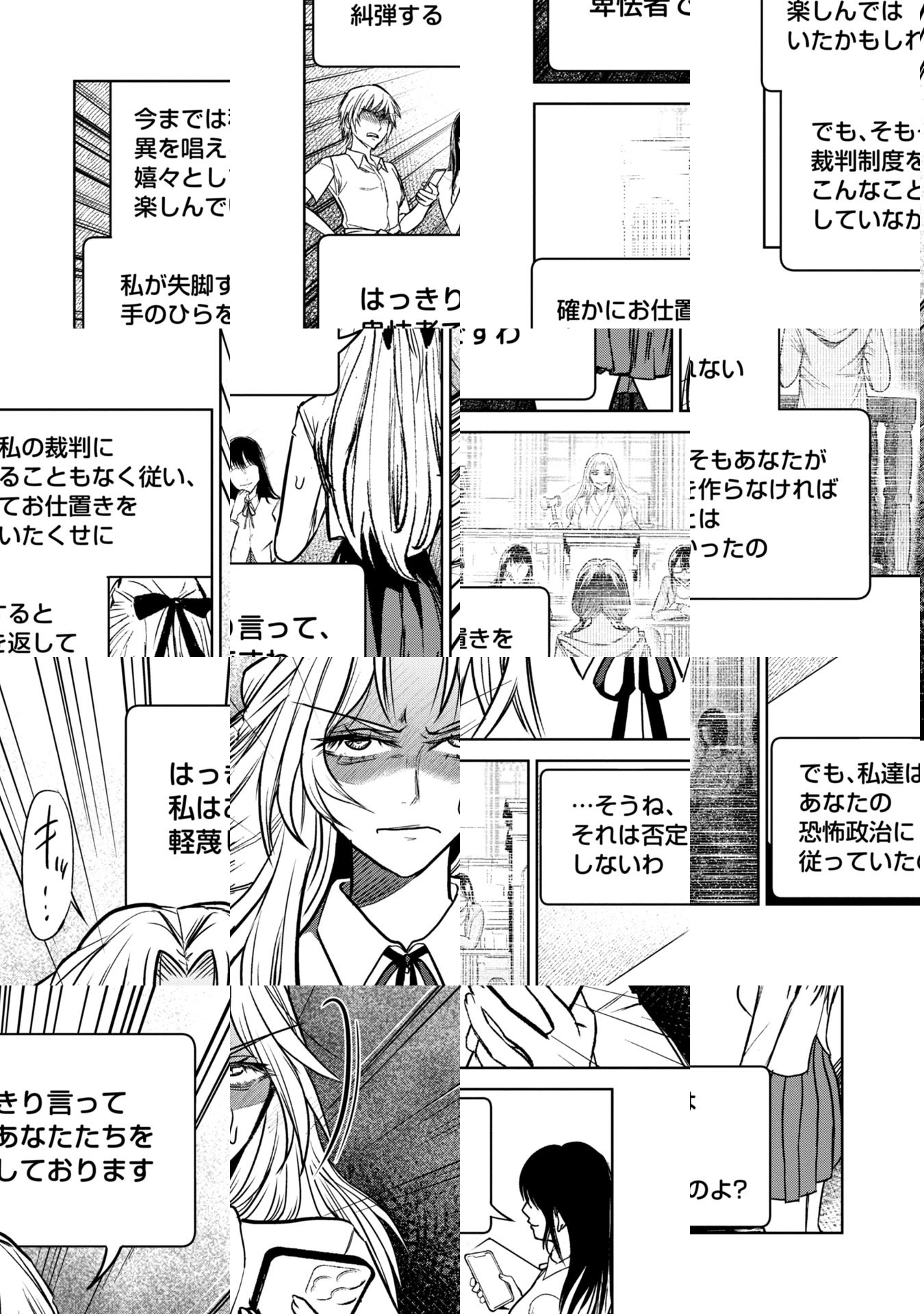 テラーノベルの大人気作をコミカライズ! この“罪”から逃れる方法は”死”のみ。 「ユマ、うちの学校は狂ってるの──」 正義感の強い少女・マナカが転校してきたクラスには、ある狂ったルールがあった。 それは、クラス全員をトークルームに強制的に加入させ、何かあるたびにそこで『学級裁判』を開く。 裁判で負けた生徒は次の日から壮絶なイジメの対象にされてしまい――。 愛と憎しみの復讐ジュブナイル、開幕。