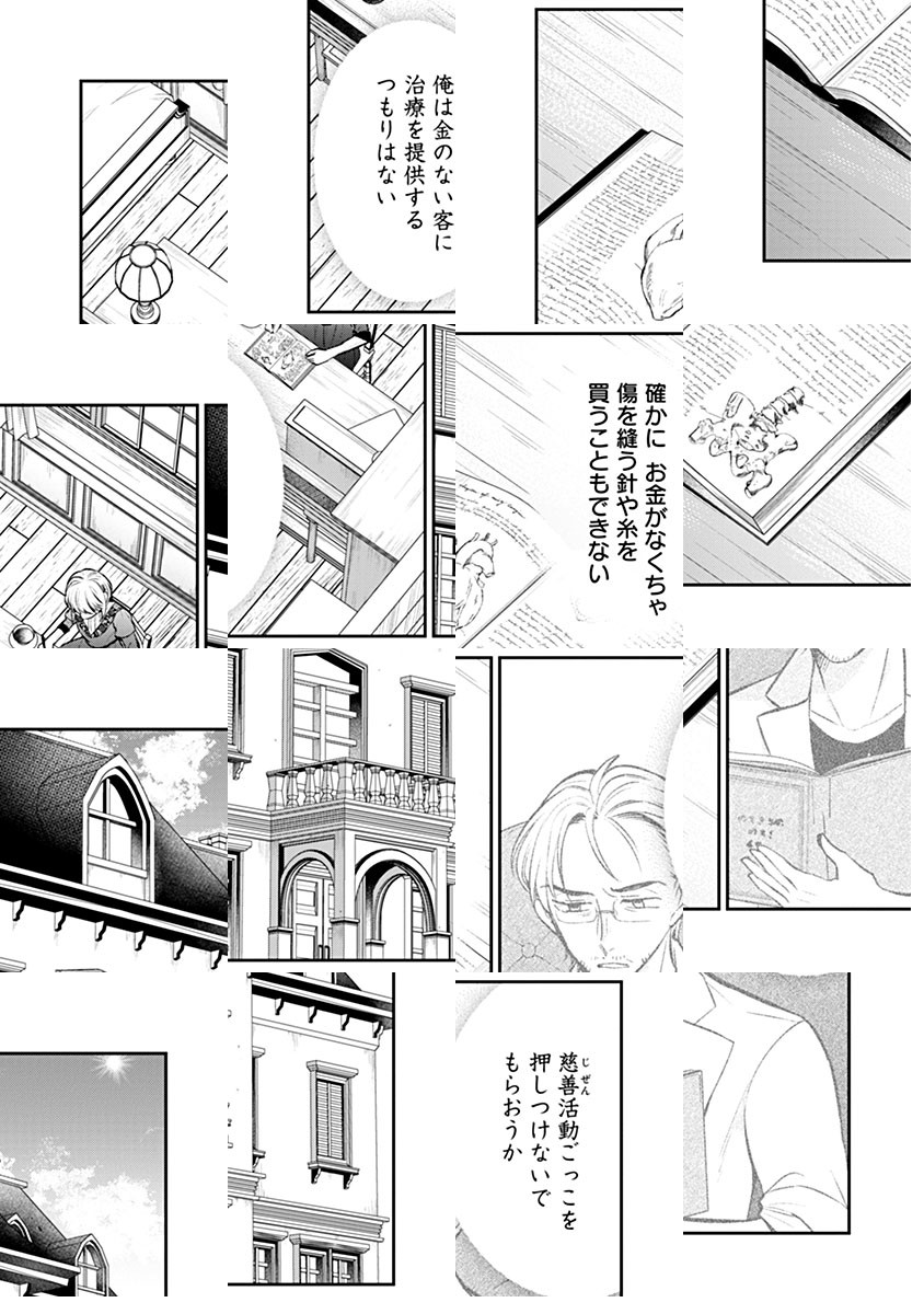 天才外科医・桐原アキラは、突如『シンデレラの婚約』の主人公キアラ・ベルワースに転生してしまう。キアラの世界では魔力で怪我を治していたが、魔力で治せない怪我人は見捨てられていた。王子・セシルの従者の応急処置をしたことをきっかけに、この国の医療体制を見直したい王子に気に入られ、プロポーズされるキアラ。王子のバックアップを受け、魔力で治らない患者たちを外科手術で治していく。最初は相棒のような関係の王子だったが、だんだんお互い惹かれていって――。医療改革で国を救う、転生医療ファンタジー。