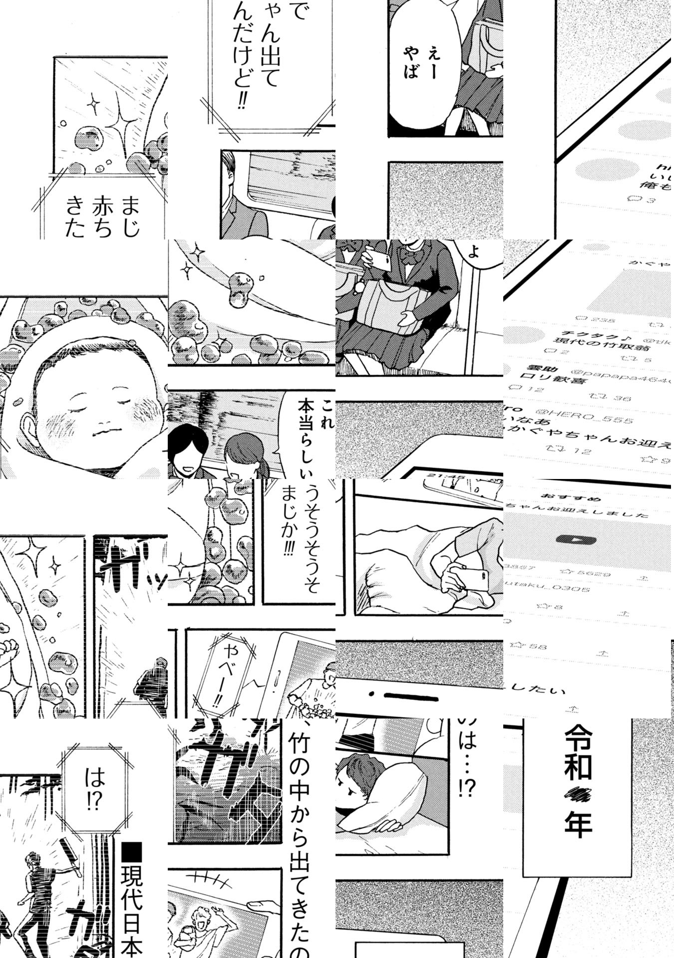 現代日本。竹の中から「女の子」と「金」が出てくるという噂を発端に、世に「竹取ブーム」が起きる。デザイナーの讃岐は、仕事の帰り道に光る竹を見つけるが、そこに斧を持った男が乱入し、竹の奪い合いに…!?