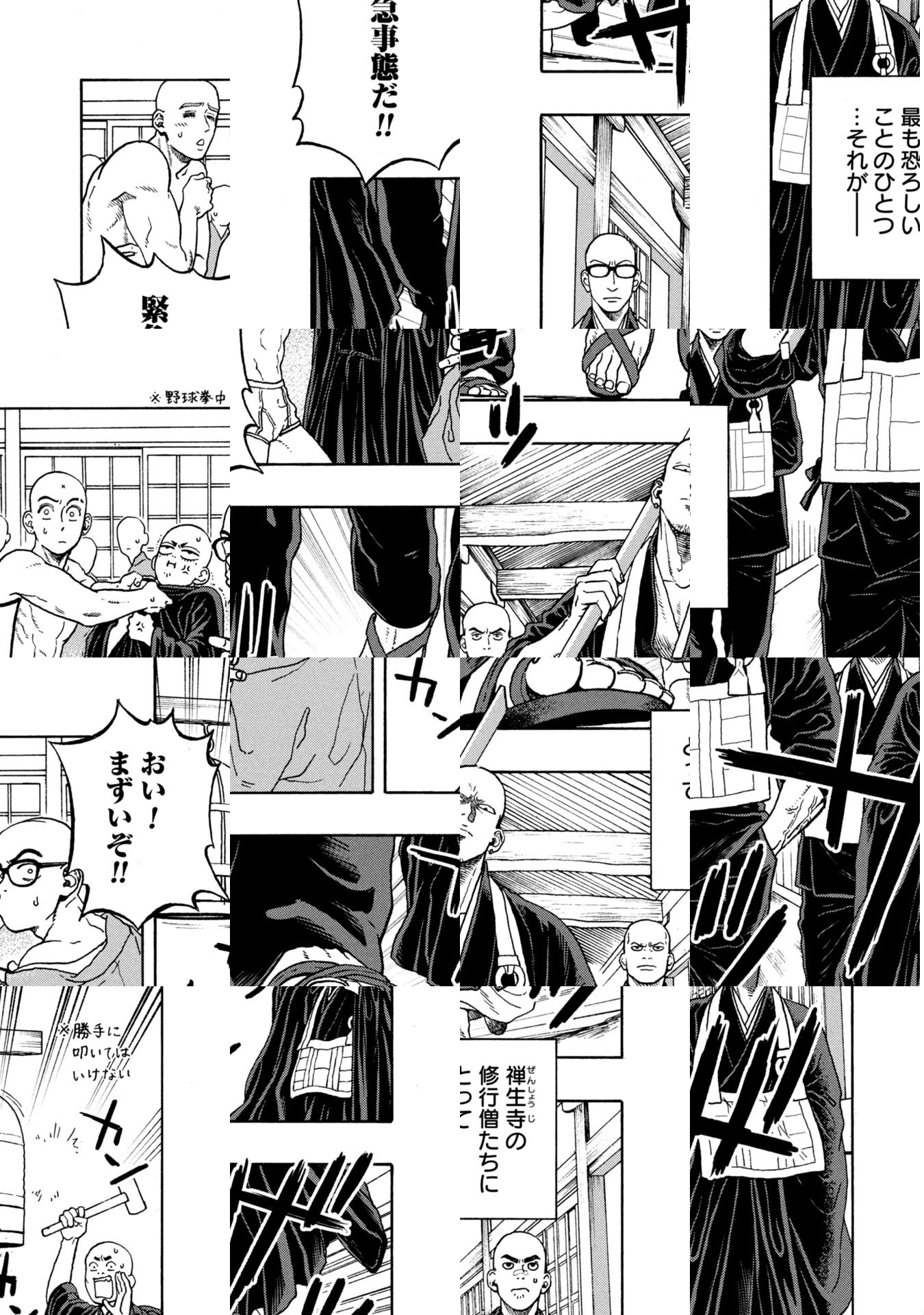ヤクザ事務所の下っ端である春本一信。ある日、事務所が襲撃され、彼と組長の幼い娘・むつみだけが生き残ることに。警察に保護された二人が身を隠すために連れていかれたのは、七〇〇年以上の歴史を有する禅の名刹「禅生寺」であった。しかしそこで待ちうけていたのは、治外法権の修行生活で…。死か禅の道かーー!? 若き雲水(僧侶)たちの青春修行グラフィティ。