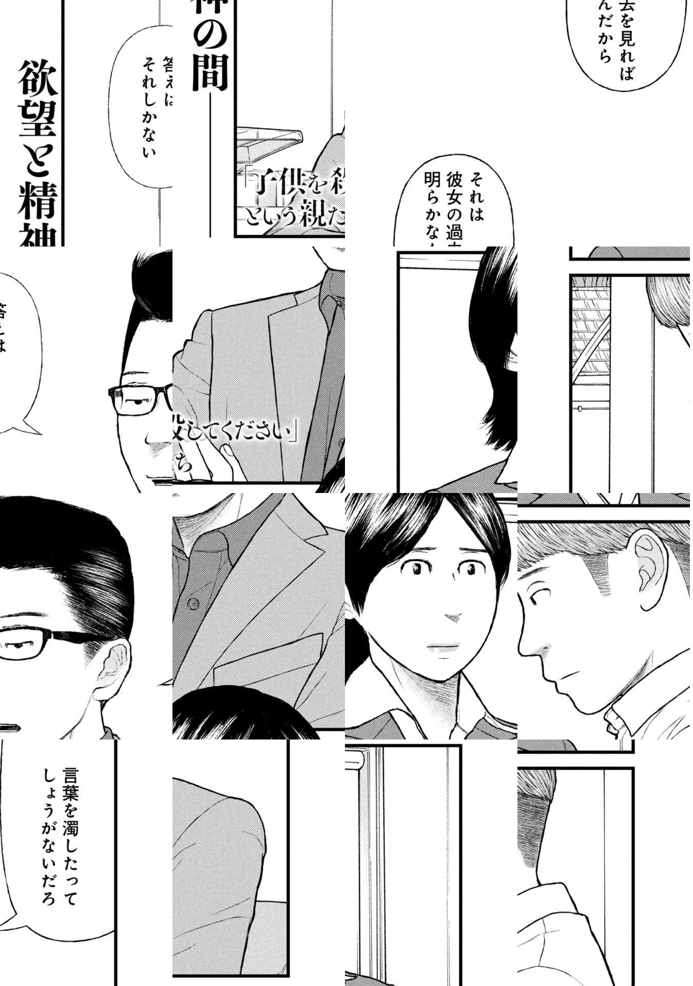 過度の教育圧力に潰れたエリートの息子、酒に溺れて親に刃物を向ける男、母親を奴隷扱いし、ゴミに埋もれて生活する娘…。現代の裏側に潜む家族と社会の闇を抉り、その先に光を当てる…。様々なメディアで取り上げられた押川剛の衝撃のノンフィクションを鬼才・鈴木マサカズの力で完全漫画化!