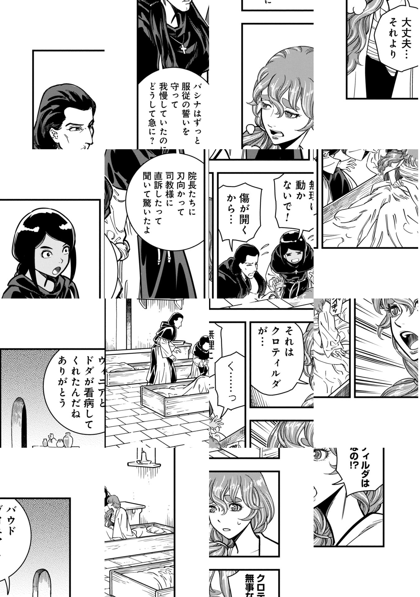 6世紀、フランク王国。ネウストリア王家の血を引く修道女のバシナは、二人の継姉に苛め虐げられていた。修道院を牛耳る二人の姉に逆らえる者はおらず、バシナは「汝の敵を赦しなさい」という教えのもと独り苦痛に耐え忍んでいた。ある時、パリ王国の王女クロティルダが修道院を目指して歩を進めていた。バシナとの出会いが、修道女たちを巻き込んだ大反乱へと繋がっていく──。