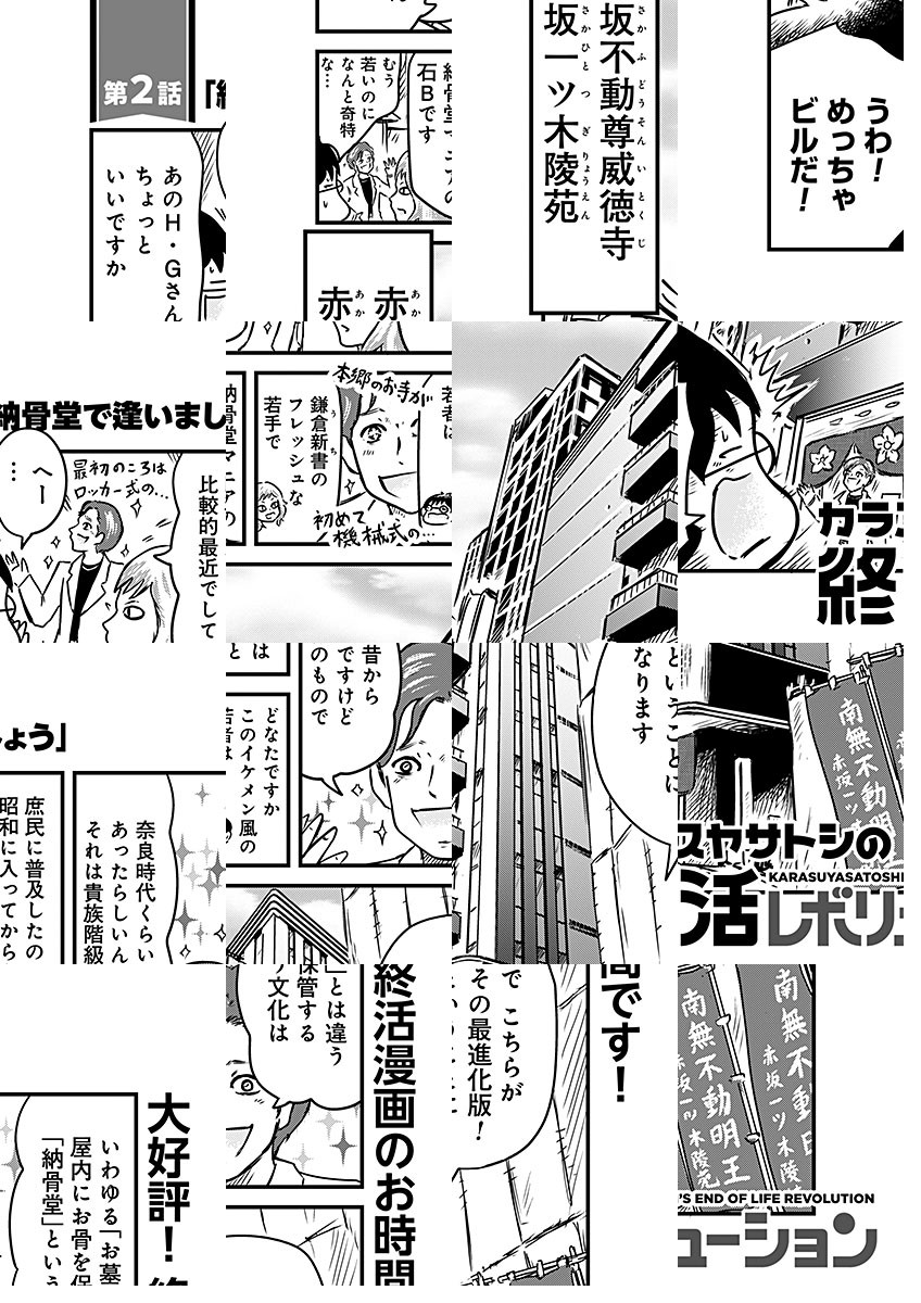 死に方を考え、生き方を知る。51歳おっさん漫画家が素人目線で描く、エンディング業界のリアル。死をポップに語るイベント、最新型のお墓事情などなど、今、急成長中の業界で、死をめぐる新たなビジネスや様々な活動をご紹介。生きているうちにご一読を。