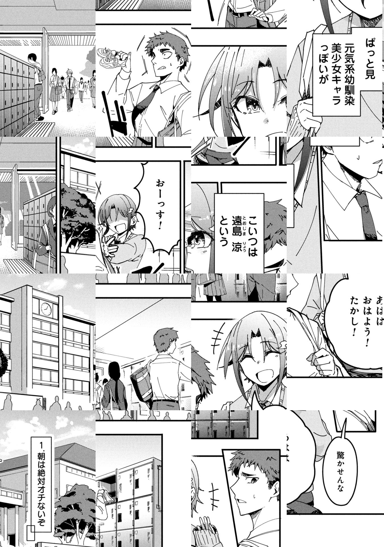 主人公・たかしの友人・遠島涼はぱっと見、元気系幼馴染美少女キャラだが、実は男の子。友情を守るためにも、遠島にときめく訳にはいかないたかしは、遠島の「男」の部分を探して気持ちを落ち着かせようとするが…!?