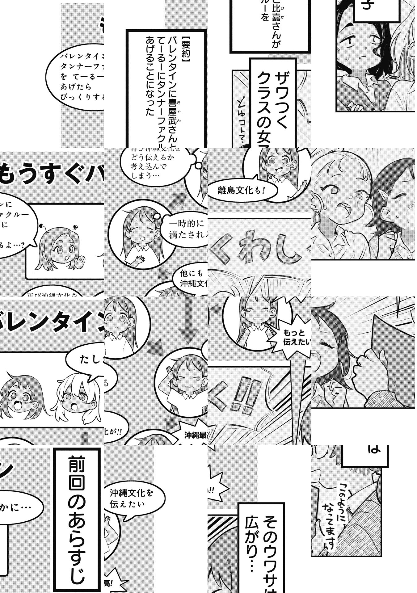 「沖縄には内地では見かけない文化、風習、そして言葉(うちーなぐち)あります。その違いを楽しく描いていきたいです。うちなーぐちは譜久村帆高さんに監修してもらっています。」 主な作品には、『ニポンゴ』『 天野家四つ子は血液型は全員違う。』(ともに集英社)がある。