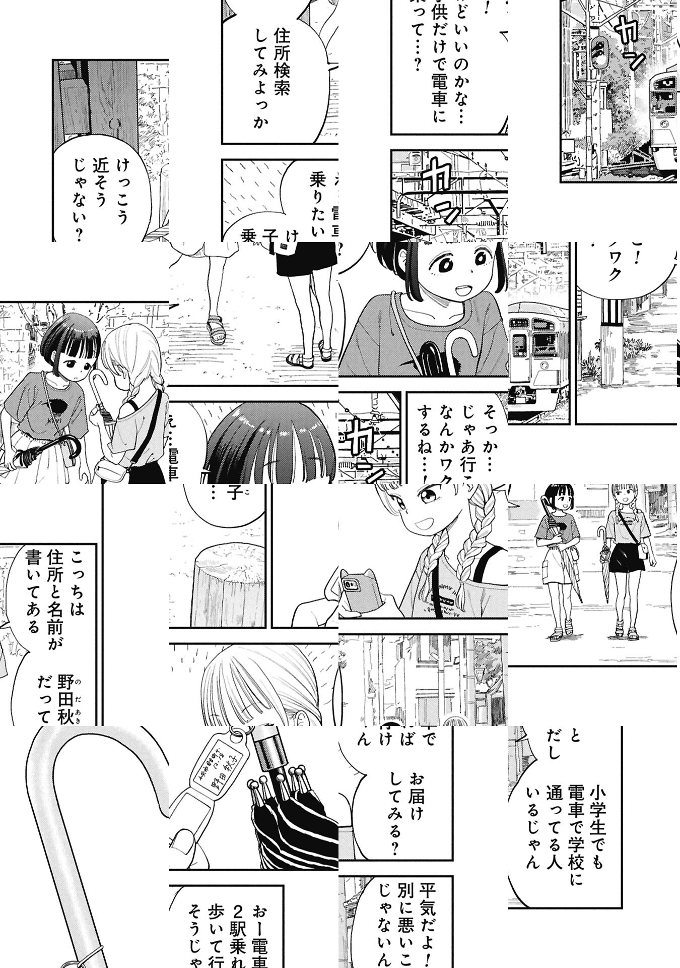近所の公園で忘れ物の傘を見つけた、まぁちゃんとさっちー。持ち主へ届けようと電車に乗ったものの、予期せぬトラブルが…?『サボタージュ・サマー』の作者が描く、のんびりショート冒険譚。