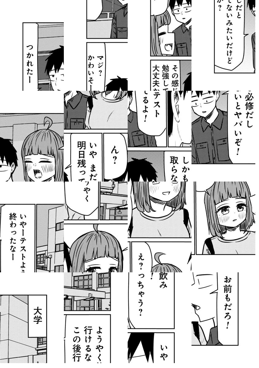 大学生の宇治は、同級生の桜井さんへの片思いの相談する為、桜井さんと親友で、自分の友人でもある鯖江に相談するが、二人っきりの居酒屋で変な雰囲気になってしまい…友情を取るか性欲を取るか!理性ギリギリキャンパスライフ開幕!!