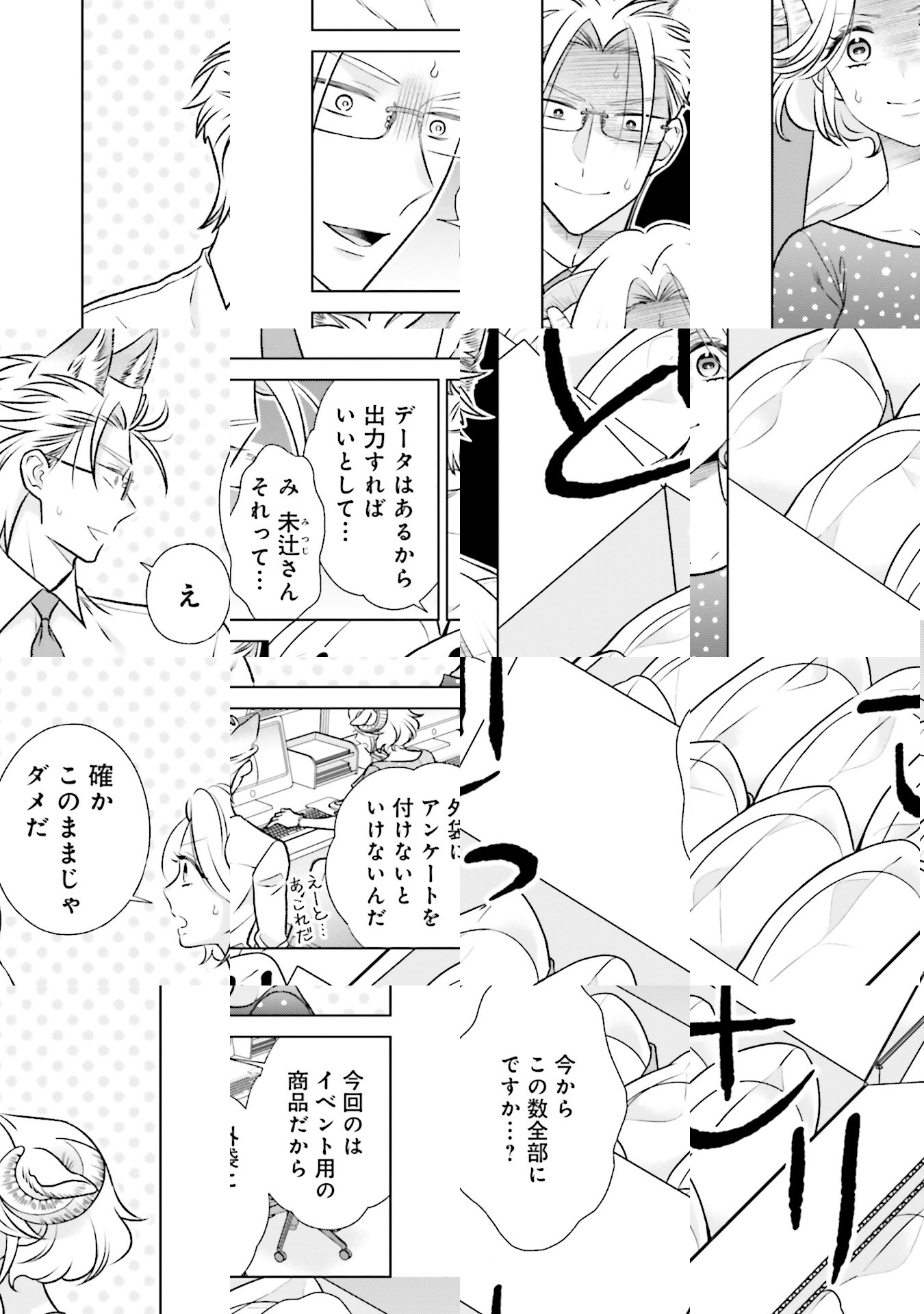 寝具メーカーに勤める大神くんは、狼を先祖に持つ生粋の狼男子。入社時から憧れていた先輩・未辻さんと同じ部に異動になったけれど、そこは未辻さんを筆頭に、羊の血を引く女子だらけの部署で──!? 動物の子孫たちが繰り広げる、アニマル・オフィスラブコメディ♪