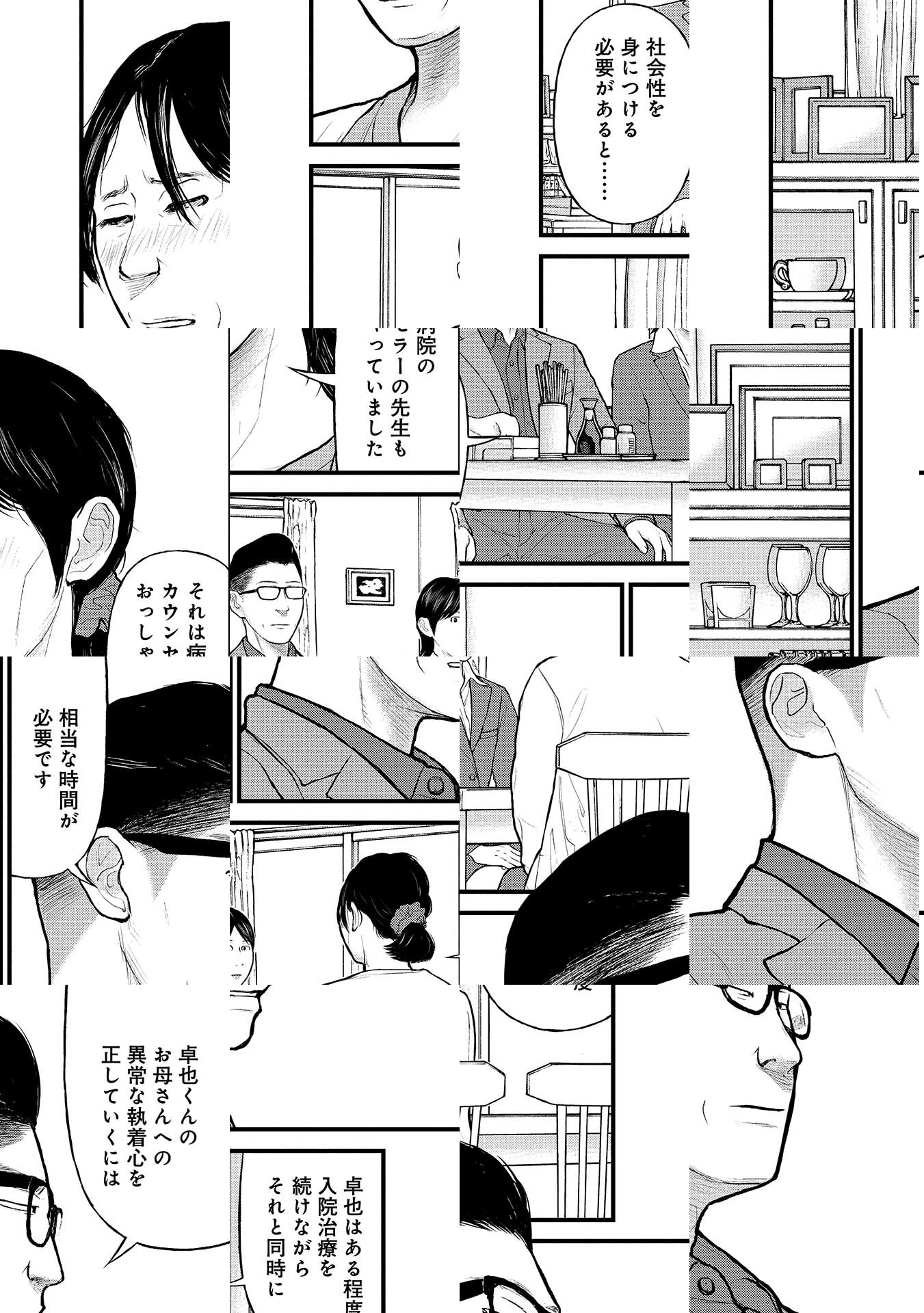 過度の教育圧力に潰れたエリートの息子、酒に溺れて親に刃物を向ける男、母親を奴隷扱いし、ゴミに埋もれて生活する娘…。現代の裏側に潜む家族と社会の闇を抉り、その先に光を当てる…。様々なメディアで取り上げられた押川剛の衝撃のノンフィクションを鬼才・鈴木マサカズの力で完全漫画化!