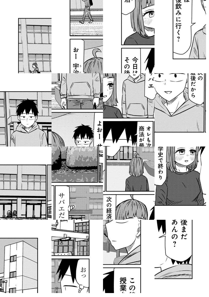 大学生の宇治は、同級生の桜井さんへの片思いの相談する為、桜井さんと親友で、自分の友人でもある鯖江に相談するが、二人っきりの居酒屋で変な雰囲気になってしまい…友情を取るか性欲を取るか!理性ギリギリキャンパスライフ開幕!!