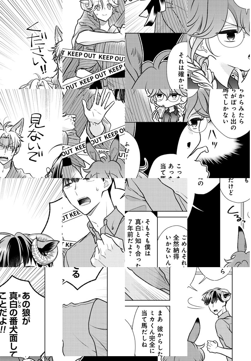 寝具メーカーに勤める大神くんは、狼を先祖に持つ生粋の狼男子。入社時から憧れていた先輩・未辻さんと同じ部に異動になったけれど、そこは未辻さんを筆頭に、羊の血を引く女子だらけの部署で──!? 動物の子孫たちが繰り広げる、アニマル・オフィスラブコメディ♪