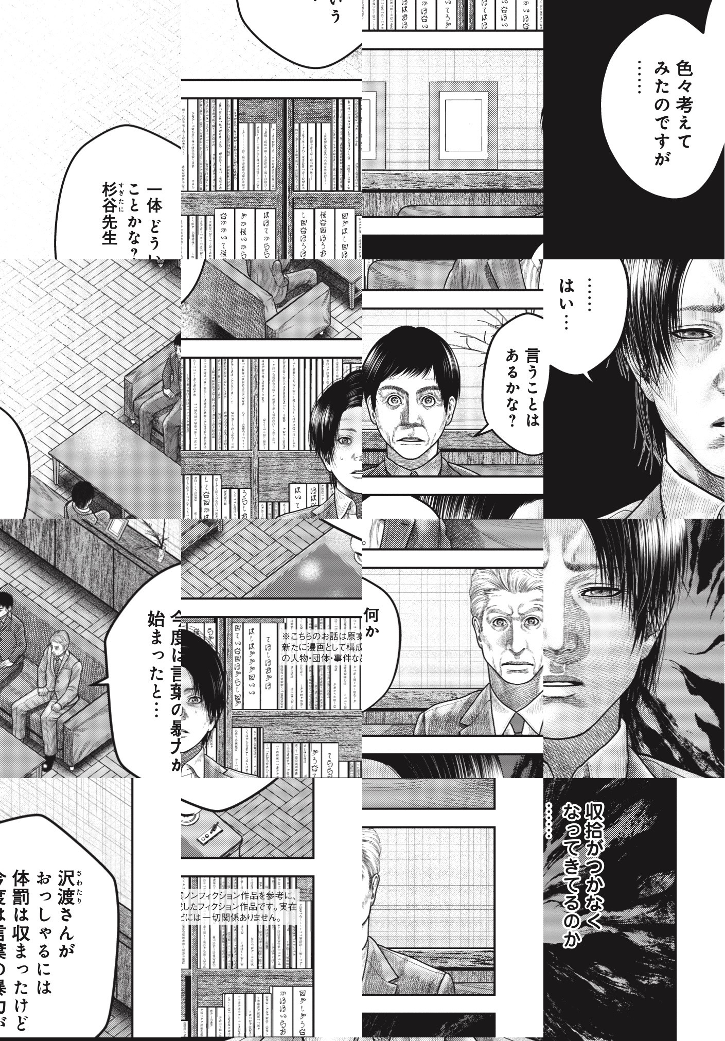 2013年10月『くらげバンチ』にて、『デッドワードパズル』(全1巻)を連載開始。2016年2月『月刊コミック@バンチ』にて、『指名手配犯』(全2巻)を連載開始。2018年5月『拷問迷宮』(全2巻)を連載開始。本作『でっちあげ』が4作目となる。