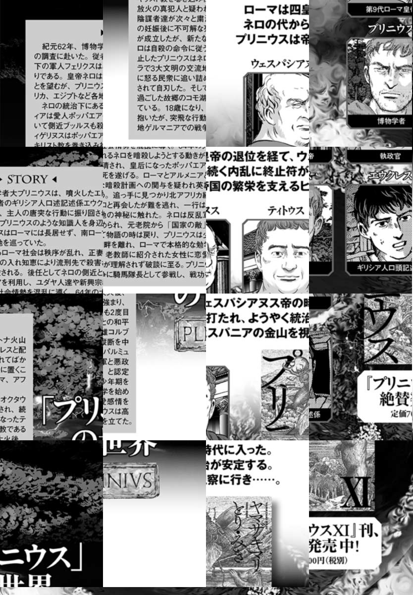 世界史上もっとも著名な博物学者にして、ローマ艦隊の司令長官。古代ローマ一の知識人にして、風呂好きの愛すべき変人。その男の名はプリニウス――。『テルマエ・ロマエ』のヤマザキマリが、最強のパートナー〝とり・みき″を迎えて、ふたたび魅惑の古代ローマ世界に挑む。圧倒的な構成と迫真の画力で2000年前の世界を描く、歴史伝奇ロマンの決定版!