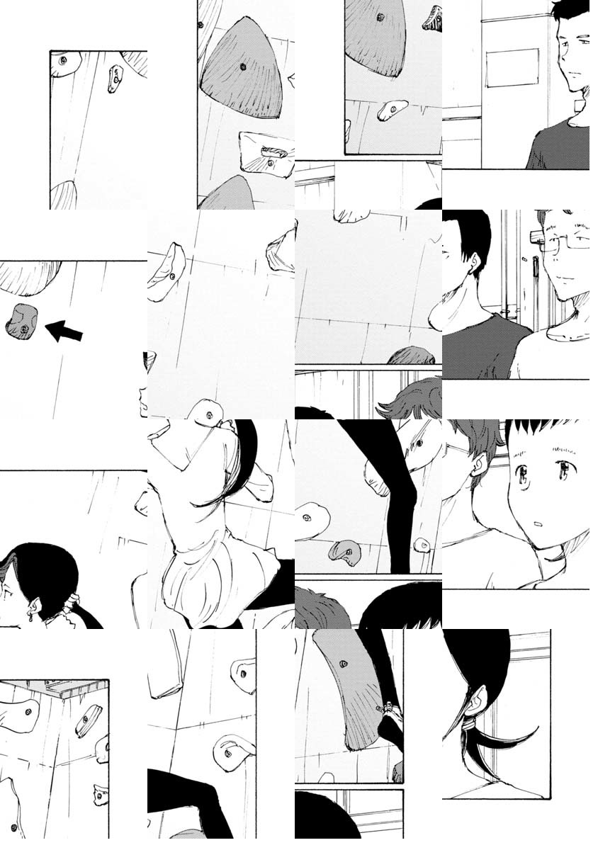 「ボルダリング漫画です。これを機に、ボルダリング面白そうやってみようと思われた方、くれぐれも無理はしないようにお願いします。いずれそういうネタにも触れるつもりですが非常に負荷が高いスポーツです。自転車では無理をして「超え」てもその日一日 走れない程度で済みますが、ボルダリングで自分の限界を「超え」ると数日、数週間、数カ月、もしかすると数年、ボルダリングが出来なくなる可能性があります。趣味スポーツは自制心ですね。ん?自分? 経験者は語る、ですね。では「のボルダ」本編よろしくお願いします。/『完全版 ぼくらの』全5巻好評発売中。「コミックDAYS」にて『ヨリシロトランク』を原作連載中。