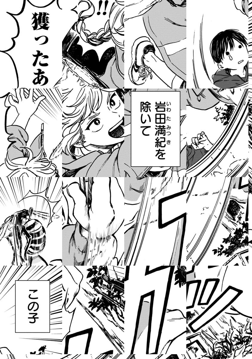 「満紀は異様な動体視力と反射神経のおかげでスズメバチをピンセットで捕まえられますが、他の人は本当になんぴとたりとも絶対に真似しないでください。もっと安全な方法で美味しくスズメバチを食べましょう。」 /8p漫画賞受賞。2020年11月に「半魚人を拾った日」、2021年5月に「季節外れのぼくら」がそれぞれ掲載された。 「半魚人を拾った日」→ https://kuragebunch.com/episode/13933686331749781459