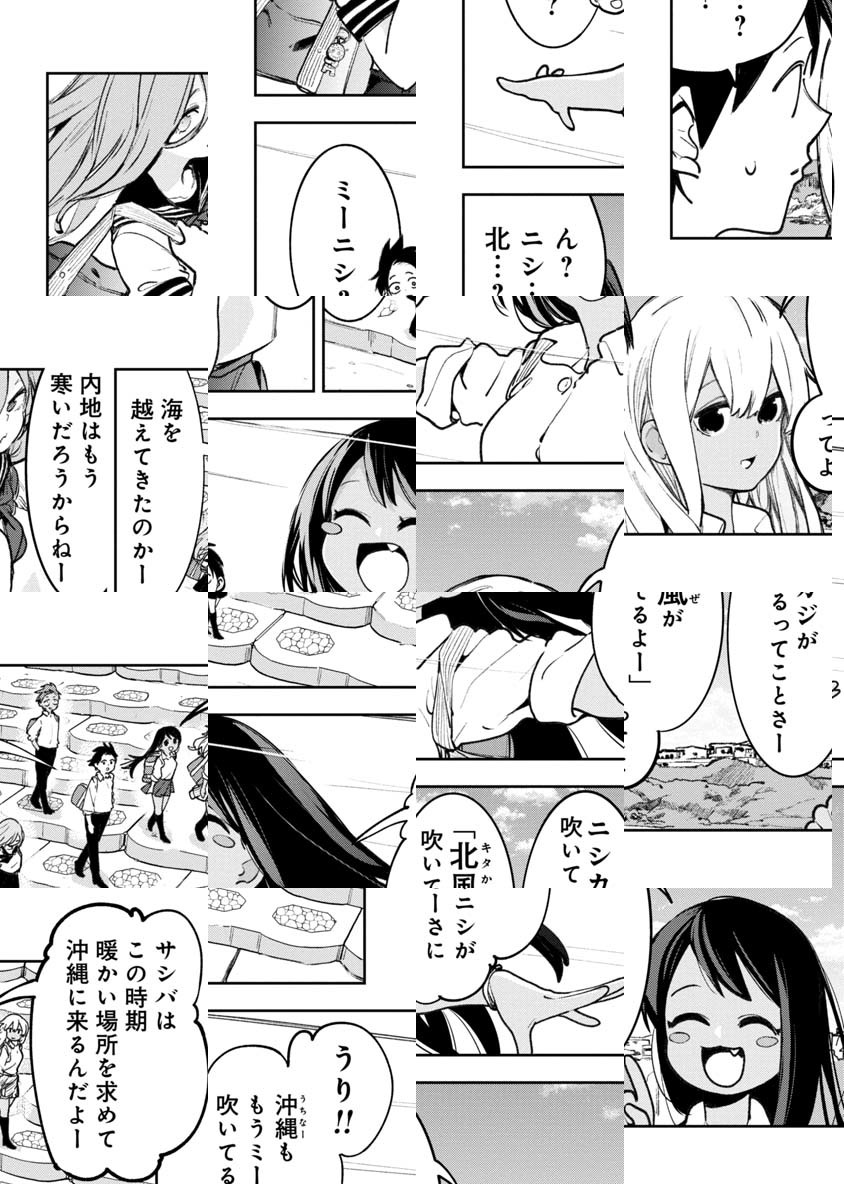 「沖縄には内地では見かけない文化、風習、そして言葉(うちーなぐち)あります。その違いを楽しく描いていきたいです。うちなーぐちは譜久村帆高さんに監修してもらっています。」 主な作品には、『ニポンゴ』『 天野家四つ子は血液型は全員違う。』(ともに集英社)がある。